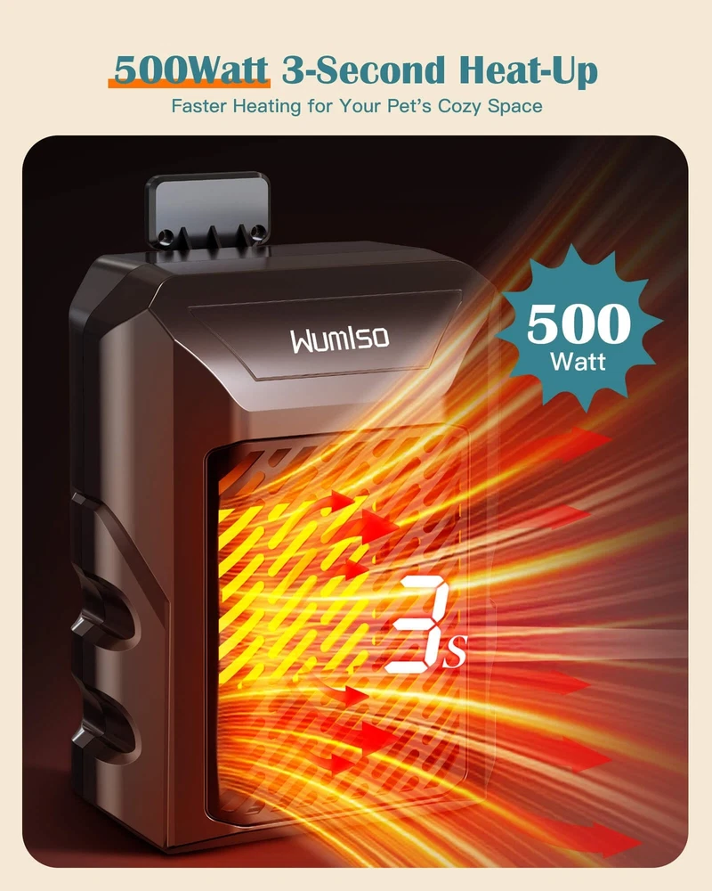 Dog House Heater, Dog House Heater with Thermostat APP WIFI Control, 500W Dog Ho App Remote Control: Our dog house heater with a thermostat allows you to remotely monitor the temperature inside the dog house anytime, anywhere, through the app, which is very convenient. In the cold winter, you no longer need to bend down to adjust the temperature outside the doghouse. You can easily take care of your pets and ensure they stay warm and healthy. You can also share the account with your family to jointly monitor and adjust the temperature of the dog house 500-Watt Rapid Heating: The 500-watt dog heater for outdoor dog houses heats up faster and performs better, covering a space of 150 cubic feet, far exceeding the 50-75 cubic feet of other products. Dog house heater with wifi control is an ideal choice for cold climate conditions, effectively preventing temperature drops and ensuring stable heating even in extreme weather. Compared to the common 300-watt pet heaters, it heats up faster and distributes heat more evenly Precise Temperature Control: Our newly upgraded dog house heater comes with a 6.5-foot long external temperature probe for precise temperature monitoring and even heating. Unlike traditional internal sensors, it directly senses the temperature of the dog house, ensuring accurate control to prevent overheating or undercooling, as well as preventing uneven temperature distribution within the dog house space. It provides your pets with a comfortable warmth on cold winter days Multipurpose Pet Heater: The most comfortable temperature for dogs is around 70°F; when the temperature drops below 50°F, pets will start to feel uncomfortable and cold. Our dog heater and ac combo has an adjustable temperature range from 41°F to 113°F, suitable not only for outdoor dog houses but also for chicken coops, rabbit cages, pet pigs, and barn cats, keeping them warm in harsh weather conditions. It is especially suitable for baby dogs, newborn pets, and senior dogs Energy Saving and Cost-Effective: The Wumlso pet house heater has a lifespan of over 10 years. Once the desired temperature is reached, it stops heating, and it will start heating again when the temperature drops 2 degrees Celsius below the set value. This smart ECO mode maximizes energy efficiency and reduces electricity bills, ensuring that your pets always enjoy a comfortable and warm environment Specification: Temperature Setting: 41℉-113℉| Time Setting: 0-24H | Power: 500W | Voltage:110-120V | 60Hz Shipping We offer FREE shipping on all orders! We ship within Three business days of payment, usually sooner. We use a selection of shipping services such as UPS, FedEx, USPS etc. We only ship to the lower 48 states, no APO/FPO addresses or PO Boxes allowed. Local pickups and combined shipping options are not provided at this time. Return You can return a product for up to 30 days from the date you purchased it. Any product you return must be in the same condition you received it and in the original packaging. Please keep the receipt. Payment We accept payment by any of the following methods: PayPal Please pay as soon as possible after winning an auction, as that will allow us to post your item to you sooner! Feedback Customer satisfaction is very important to us. If you have any problem with your order, please contact us and we will do our best to make you satisfied. Contact Us If you have any queries, please contact us via ebay. We usually respond within 24 hours on weekdays. Please visit our eBay store to check out other items for sale! Thank you for shopping at our store.