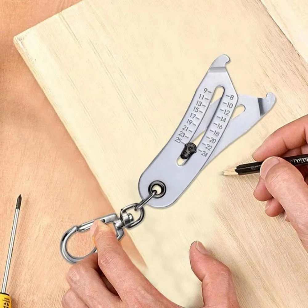 Caliper Gauge Keyring Nut Bolt Head Sizer Precise Thread Size Checker Keychain Color: Silver Package Includes: 1pc Precise Thread Size Checker Keychain Material: Stainless Steel Size: 8.2*3.8cm (3.23*1.50in) Special Feature: Portable,Metric,Accurately 1.Convenience Outdoors: With its keychain ring, the Thread Size Checker can be attached easily to your keys or belt for outdoors use. Lightweight and compact, its the perfect tool to quickly identify thread sizes no matter where you are 2.Easy Thread Identification: Identify thread size quickly and accurately with our Thread Size Checker Keychain. Simply insert the workpiece and slide the knob to confirm if the thread meets the standard. It saves you time and effort and eliminates work 3.Efficient Thread Sizing: This Thread Size Checker Keychain combines a variety of functions to make measurement more convenient and efficient, ensuring quick and accurate thread sizing in the field 4.Intuitive Measurement: Enjoy simple measuring with our Thread Size Checker Keychain. Its intuitive design provides two unit labels, metric mm and imperial inch, ensuring first-time users can inspect threads with ease 5.Multiple Uses: Ensure accurate measurements with this professional-grade Thread Size Checker Keychain. A must-have for technicians and engineers to check various thread specifications on factory floors, maintenance services, and construction sites The Portable Thread Checker Keychain is a must-have for anyone who needs to tighten and measure screws and bolts on-the-go. Take it out and use it any time and anywhere, without complicated operations. It's perfect for routine maintenance tasks and comes in a portable design that fits easily on your keychain. Color: Silver Package Includes: 1pc Precise Thread Size Checker Keychain Material: Stainless Steel Size: 8.2*3.8cm (3.23*1.50in) Special Feature: Portable,Metric,Accurately 1.Convenience Outdoors: With its keychain ring, the Thread Size Checker can be attached easily to your keys or belt for outdoors use. Lightweight and compact, its the perfect tool to quickly identify thread sizes no matter where you are 2.Easy Thread Identification: Identify thread size quickly and accurately with our Thread Size Checker Keychain. Simply insert the workpiece and slide the knob to confirm if the thread meets the standard. It saves you time and effort and eliminates work 3.Efficient Thread Sizing: This Thread Size Checker Keychain combines a variety of functions to make measurement more convenient and efficient, ensuring quick and accurate thread sizing in the field 4.Intuitive Measurement: Enjoy simple measuring with our Thread Size Checker Keychain. Its intuitive design provides two unit labels, metric mm and imperial inch, ensuring first-time users can inspect threads with ease 5.Multiple Uses: Ensure accurate measurements with this professional-grade Thread Size Checker Keychain. A must-have for technicians and engineers to check various thread specifications on factory floors, maintenance services, and construction sites The Portable Thread Checker Keychain is a must-have for anyone who needs to tighten and measure screws and bolts on-the-go. Take it out and use it any time and anywhere, without complicated operations. It's perfect for routine maintenance tasks and comes in a portable design that fits easily on your keychain.