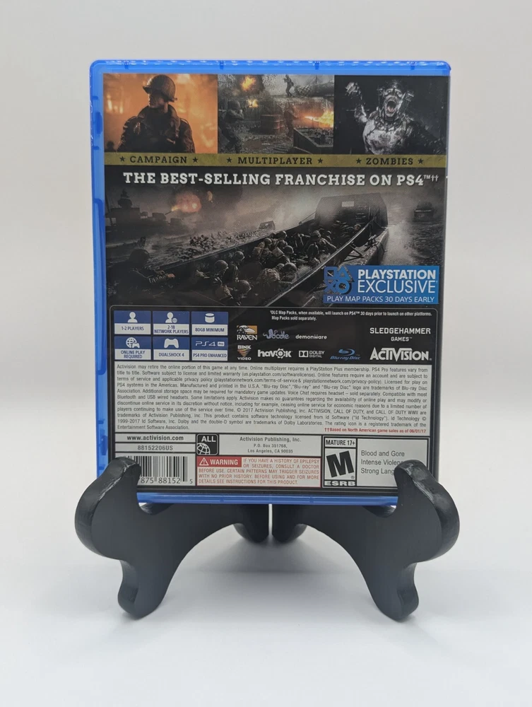 Genre:Action & Adventure, Shooter, WarPublisher:Activision ClassicsCountry/Region of Manufacture:United StatesMPN:NAUPC:047875881082Features:Complete Edition, Multiplayer, Online Playability, PS4 Pro EnhancedSub-Genre:Action & Adventure, Call of Duty, First Person Shooter, WWIIRating:M - MaturePlatform:Sony PlayStation 4Release Year:2017Video Game Series:Call of DutyGame Name:Call of Duty: WWIIgtin13:047875881082Region Code:Region Free