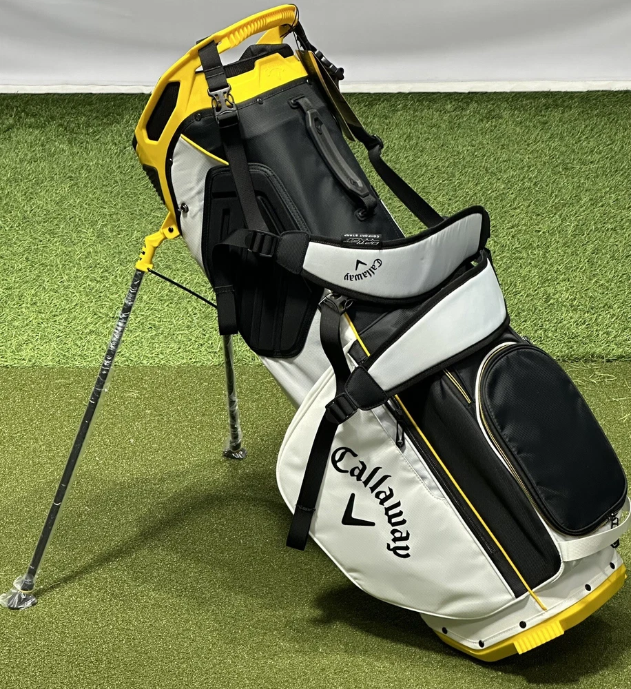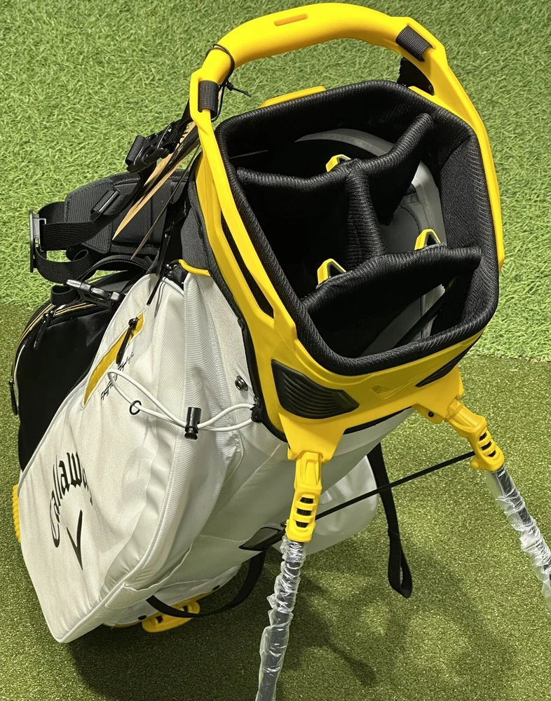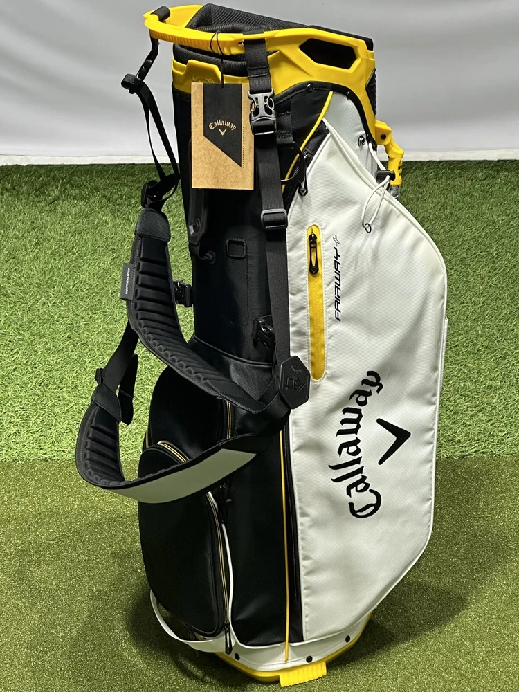 We are a reputable golf company that has been in business in St. Louis, Missouri since 1975. We have been doing this for 40 years because we do things right the first time. WE HAVE THE FASTEST SHIPPING ON EBAY! Don't believe us? Check out our Feedback. If you have questions, please feel free to ask. As always, thank you for looking. Callaway Fairway+ Stand Golf Bag (Style #5123045) COLOR: Black/White/Golden STYLE: Stand Bag DIVIDERS: 4-Way Divider CONDITION: NEW w/ Tags (10/10) RAIN HOOD: Included! Fairway+ bridges the gap between Fairway C and Fairway 14. Featuring our new proprietary 4-way Lowrider top with Apex divider system, the Fairway+ is light enough to carry or integrates seamlessly with most modern push carts. Mid-Sized 4-Way Lowrider* top w/ rubber overmold grip blocks (Pushcart Friendly) Metal zip pulls Quick clips / Single-strap ready Alloy towel ring Rugged and durable fabric Rain hood included / 5 lbs.