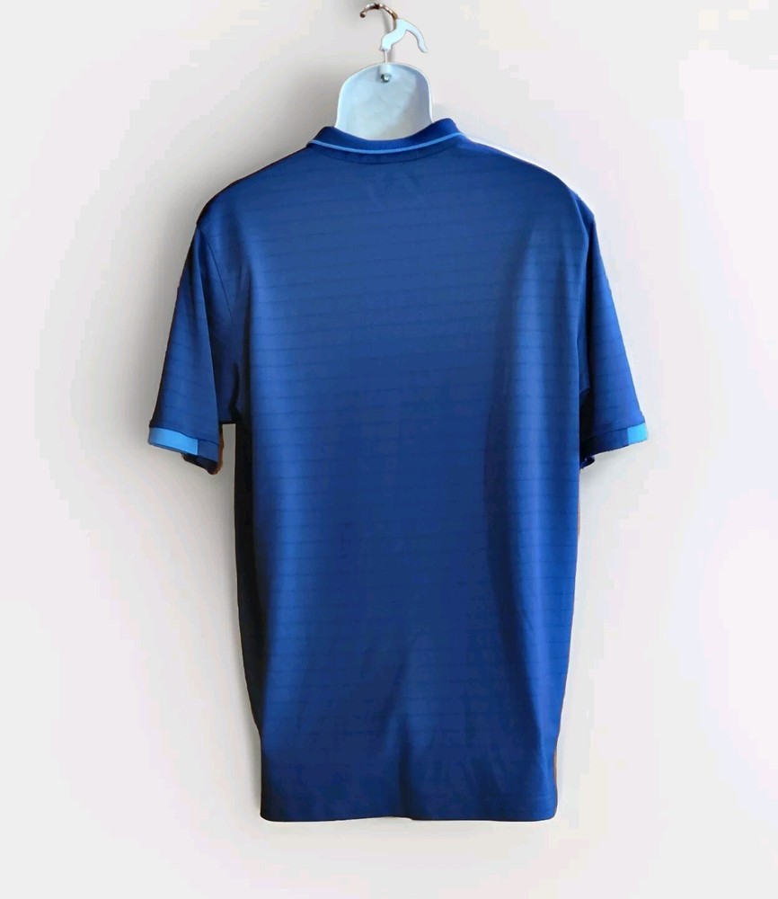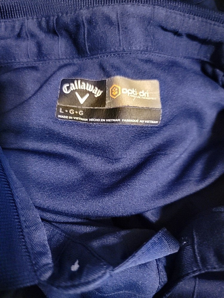 Elevate your golf game with this Callaway Opti-Dri Short Sleeve Polo Shirt in Men's Size L. The shirt features a classic collared neckline with a spread collar style and a button closure. It is made of 100% polyester knit fabric that is lightweight, stretchy, quick-drying, and breathable, making it perfect for all seasons. The shirt also includes various features such as easy care, moisture-wicking, and tagless, ensuring that you stay comfortable and stylish throughout your day. The blue rippled look adds a touch of sporty elegance to the shirt, making it suitable for travel, activewear, casual, and business occasions. Whether you're walking or playing golf, this Callaway polo shirt is the perfect addition to your wardrobe.
