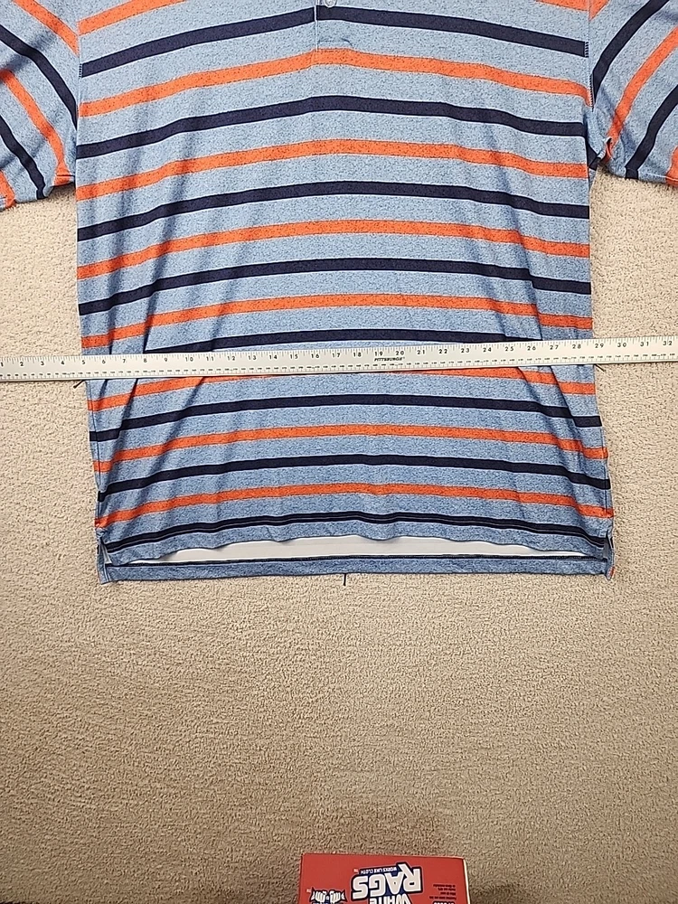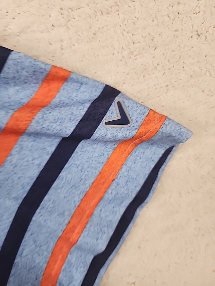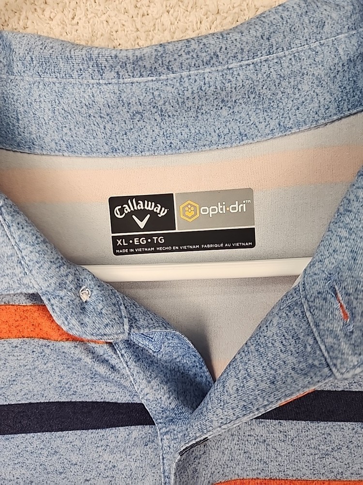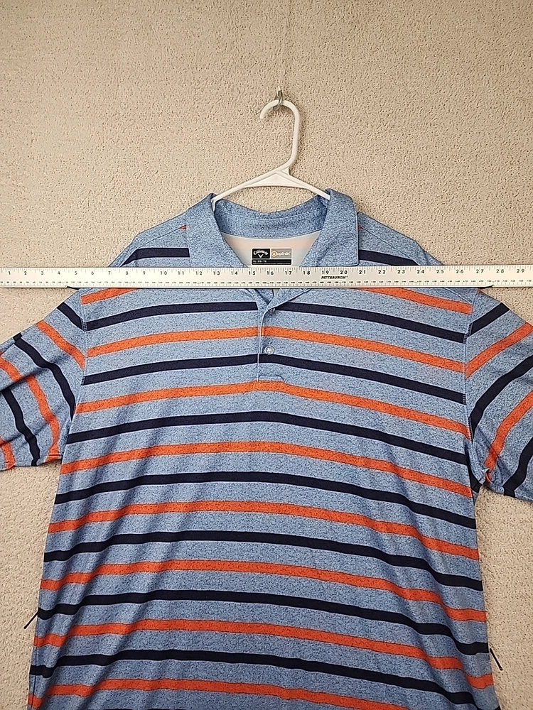 Refer to photos for measurements The Callaway Golf Shirt is a men's short sleeve polo designed for optimal performance on the golf course. Made with Opti Dri technology, this shirt helps keep you dry and comfortable during your game. The striped pattern adds a touch of style, while the XL size ensures a comfortable fit for larger individuals. Perfect for any golfer looking for a high-quality shirt that combines comfort and style on the course.