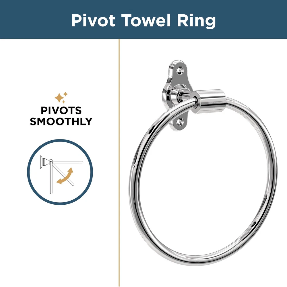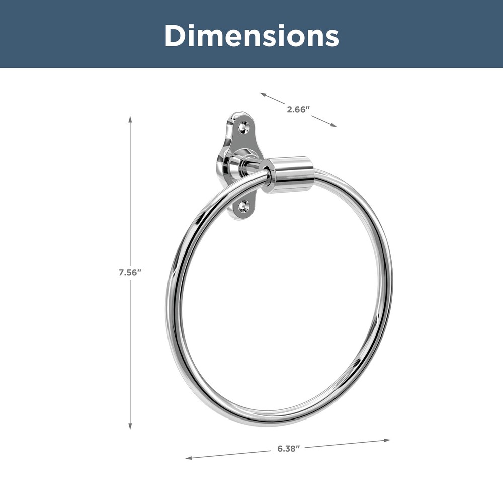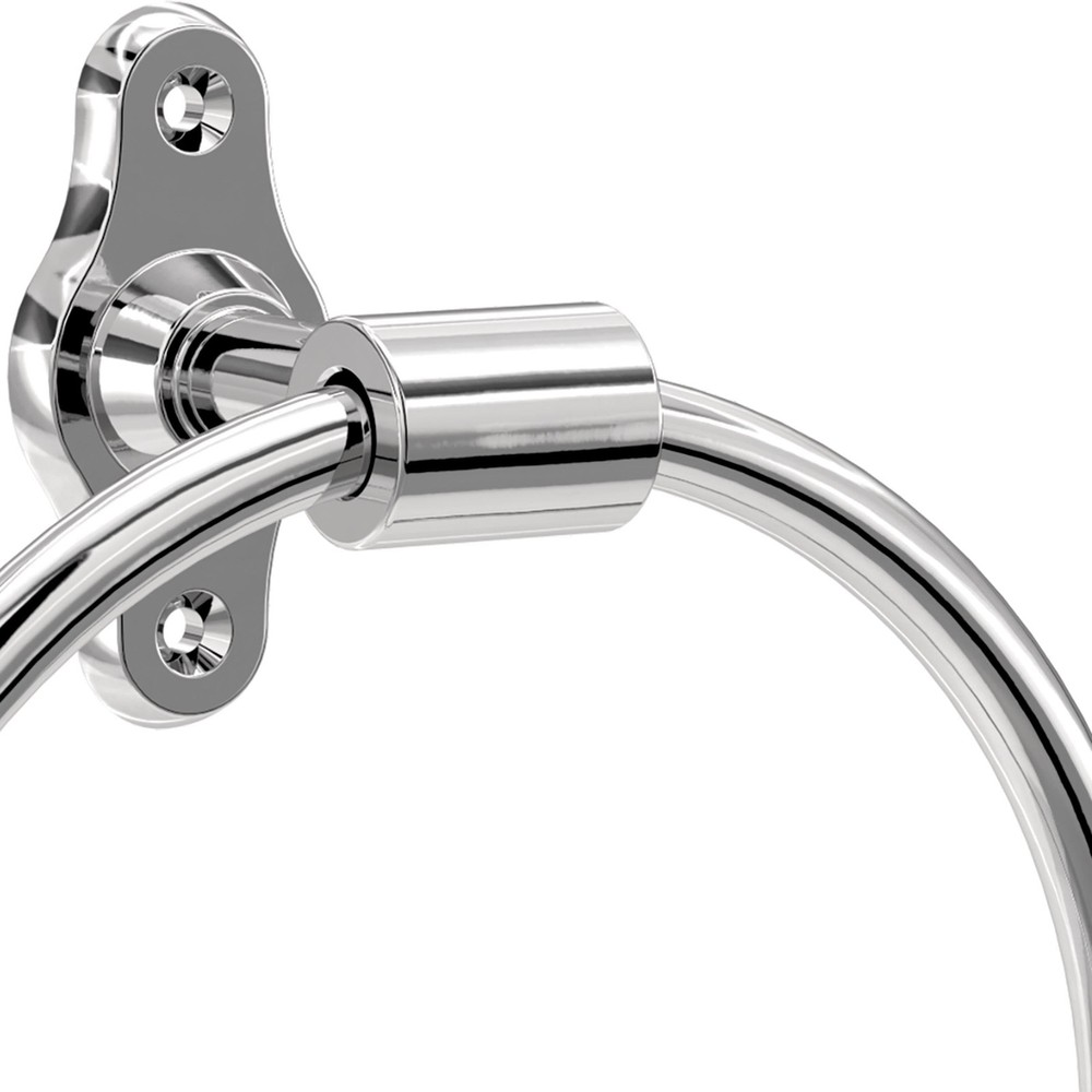 The Calloway Bath Collection from combines minimalism and industrial-inspired design. The rounded corners and exposed mounting hardware evoke a look, yet the clean lines make it modern and ageless. This wall mount round towel ring keeps hand towels conveniently within reach. Complete your space with coordinating pieces from the full collection (sold separately). BATH HARDWARE: Polished chrome round closed towel ring for the bathroom FINISH: Chrome’s high gloss look pairs well with whites, clean lines, or to add a feel BUILT TO LAST: Long-lasting, durable finish resists corrosion, tarnish, and discoloration DURABLE: Crafted from multiple metals for strength and reliability DIMENSIONS: Towel ring measures 7.56" H x 6.38" L x 2.66" D EASY INSTALL: All mounting hardware, template, and instructions provided COORDINATE: Complete your look with the coordinating Calloway Bath Collection of accessories (sold separately) : Confidently backed by a Limited