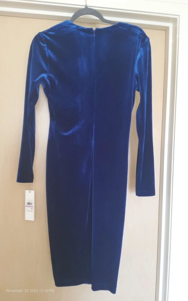 Calvin Klein Elegant Velvet Royal Blue Faux Wrap Easy Fit Sheath Dress size 6. Condition is New with tags. Shipped with USPS Ground Advantage.