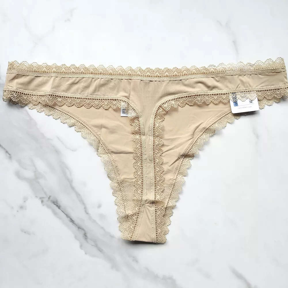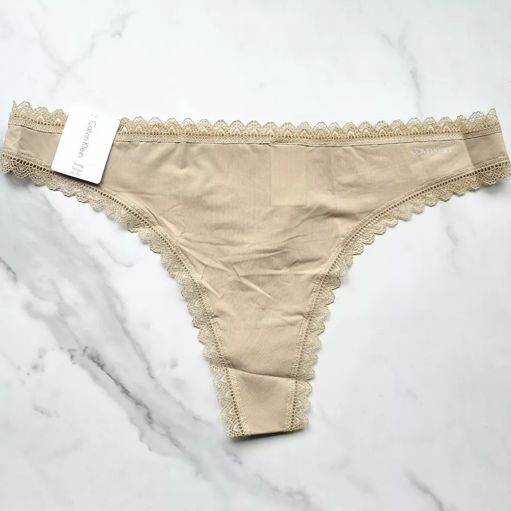 All photos are taken by Goob's Closet & Boutique and may not be reused without permission. Goob's Closet & Boutique lists on multiple platforms. If you choose to wait or "Watch", the listing may sell out on another platform first, and will then no longer be available for purchase on eBay without notice to you. With its minimal back coverage and low-rise design, this thong panty offers a sleek, barely-there fit that's perfect for both special occasions and everyday wear. Crafted from ultra-smooth stretch microfiber fabric, it feels silky-soft against your skin while providing a clean, polished look. Plus, the scallop-edged ornate lace trim at the waist and leg openings adds a touch of femininity and elegance. And the finishing touch? The iconic Calvin Klein logo at the waistband for a classic yet contemporary feel. Details Thong Style Minimal Back Coverage Low Rise Ultra Sleek and Smooth Microfiber Fabric Classic Scallop Edge Ornate Lace Trim at Waist and Leg Openings Iconic Calvin Klein Logo at Waist Style No. QD3705 Color: Desert Material Body: 83% Nylon, 17% Elastane Gusset Lining: 100% Cotton Care Machine Wash Measurements Calvin Klein Size S (Small) will fit Waist 26.5-27.5 inches, Hips 36.5-37.5 inches best. Calvin Klein Size M (Medium) will fit Waist 28.5-29.5 inches, Hips 38.5-39.5 inches best. Calvin Klein Size L (Large) will fit Waist 30.5-31.5 inches, Hips 40.5-41.5 inches best. Calvin Klein Size XL (Extra Large) will fit Waist 33.5-34.5 inches, Hips 43.5-44.5 inches best.