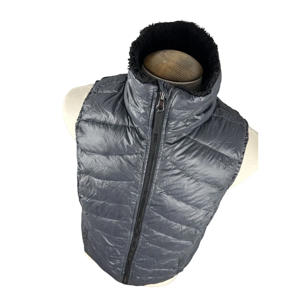 This Calvin Klein Women's Grey Jacket Gilet in size XL is a stylish and warm option for various occasions like travel, parties, workwear, and more. Made from wind-resistant nylon with a quilted design, the sleeveless gilet features a full zip closure and down insulation for added comfort. The mid-length jacket has a grey colour with no pattern, making it a versatile and fashionable choice for autumn, winter, spring, or summer wear. Perfect for those looking for a designer piece that combines both style and functionality. Pit to Pit: Approx 21" Collar to Hem: Approx 25"