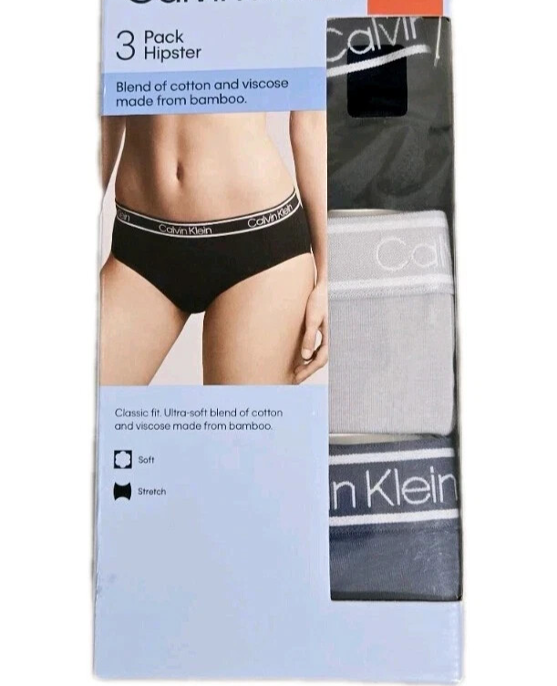 Calvin Klein Women's Ultra-Soft Stretch Cotton 3-Pack Hipster Size: Medium Color: Multicolor Content: 66% Viscose / 29% Cotton / 5% Elastane