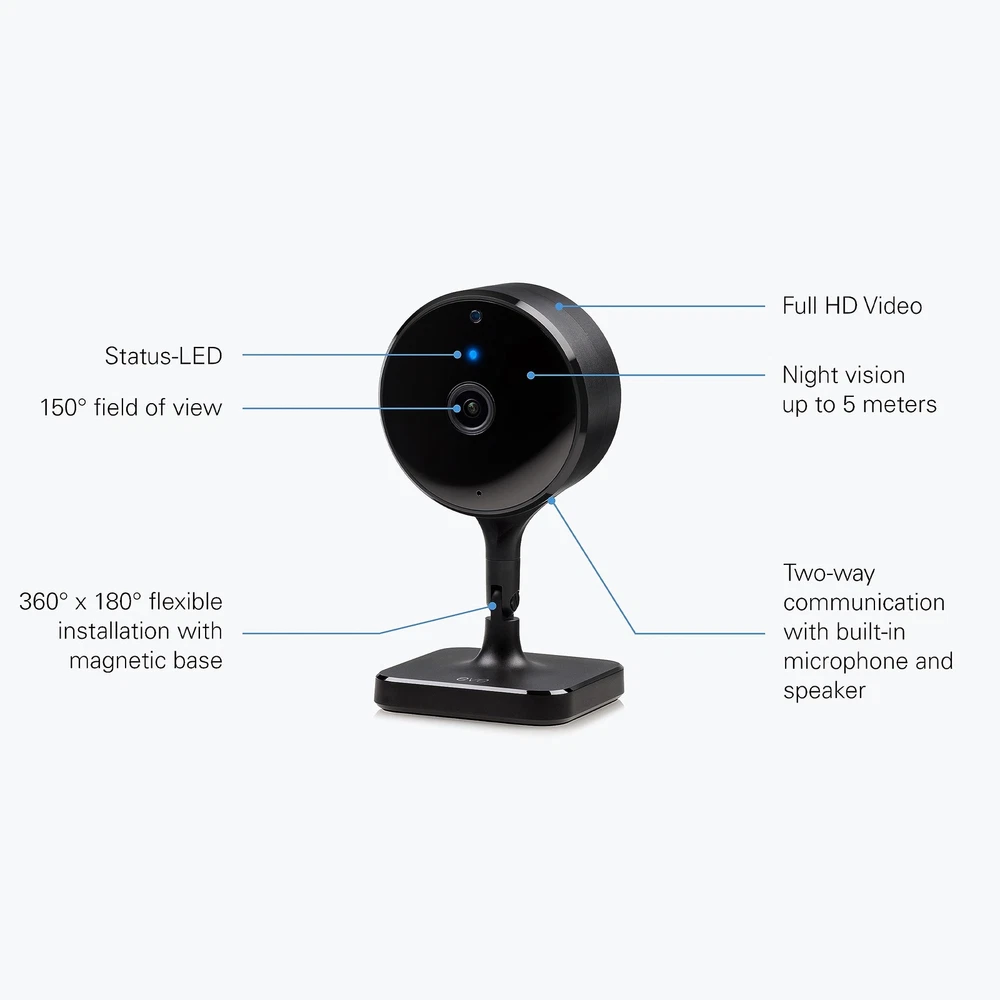 Keep a close eye on your home around the clock and protect the privacy of your personal space in the process. Receive rich notifications on your iPhone immediately when something is up in your home. Cam is designed exclusively for Apple HomeKit Secure Video and was built from the ground up to protect your privacy. You decide if you want to record every motion automatically or distinguish between people and pets – regardless of whether you’re at home or not. The data is analyzed securely in your home, not in the cloud. Cam requires iPhone or iPad with the latest version of iOS/iPadOS Keep a close eye on your home with Cam and get notifications on your iPhone or iPad/Apple Watch when something is up Protect your privacy with maximum data security – Cam exclusively supports Apple HomeKit Secure Video; End-to-end encryption ensures only you can view live and recorded video Record every motion automatically or distinguish between people and pets (People/Pet recognition) and automatically deactivate your camera when someone is home Home hub required (HomePod or Apple TV with tvOS 15) and iCloud+ (not included)