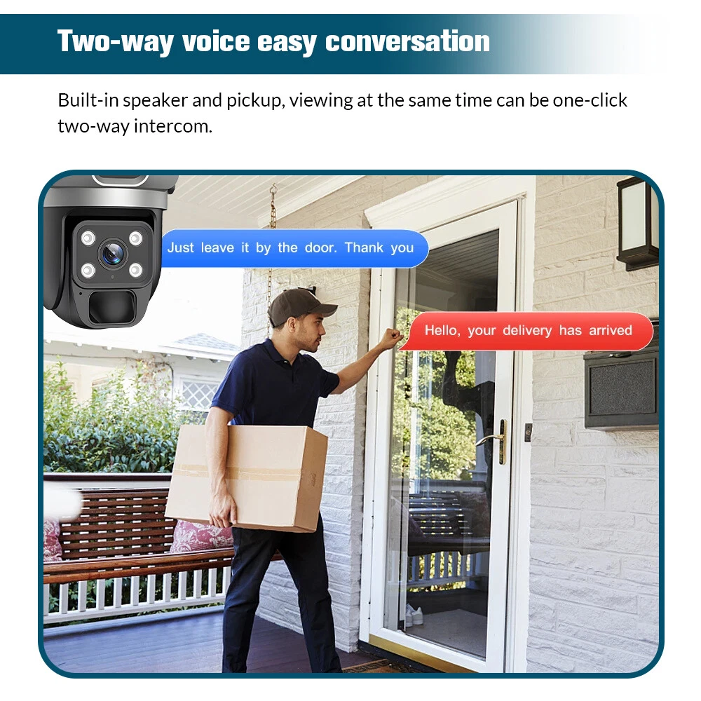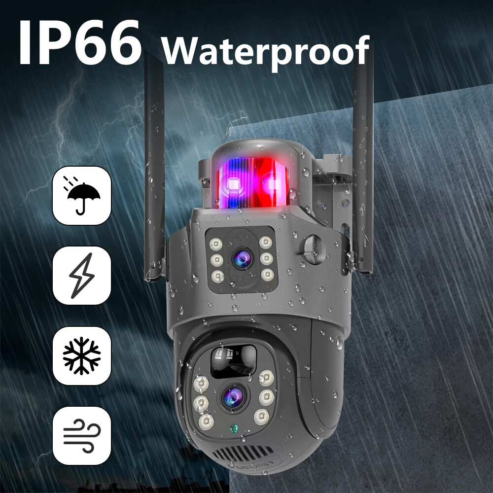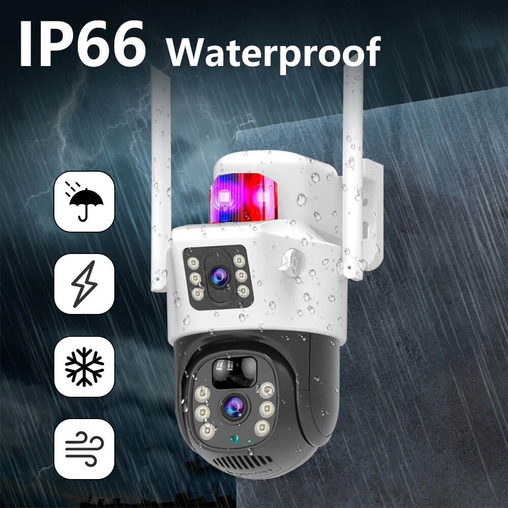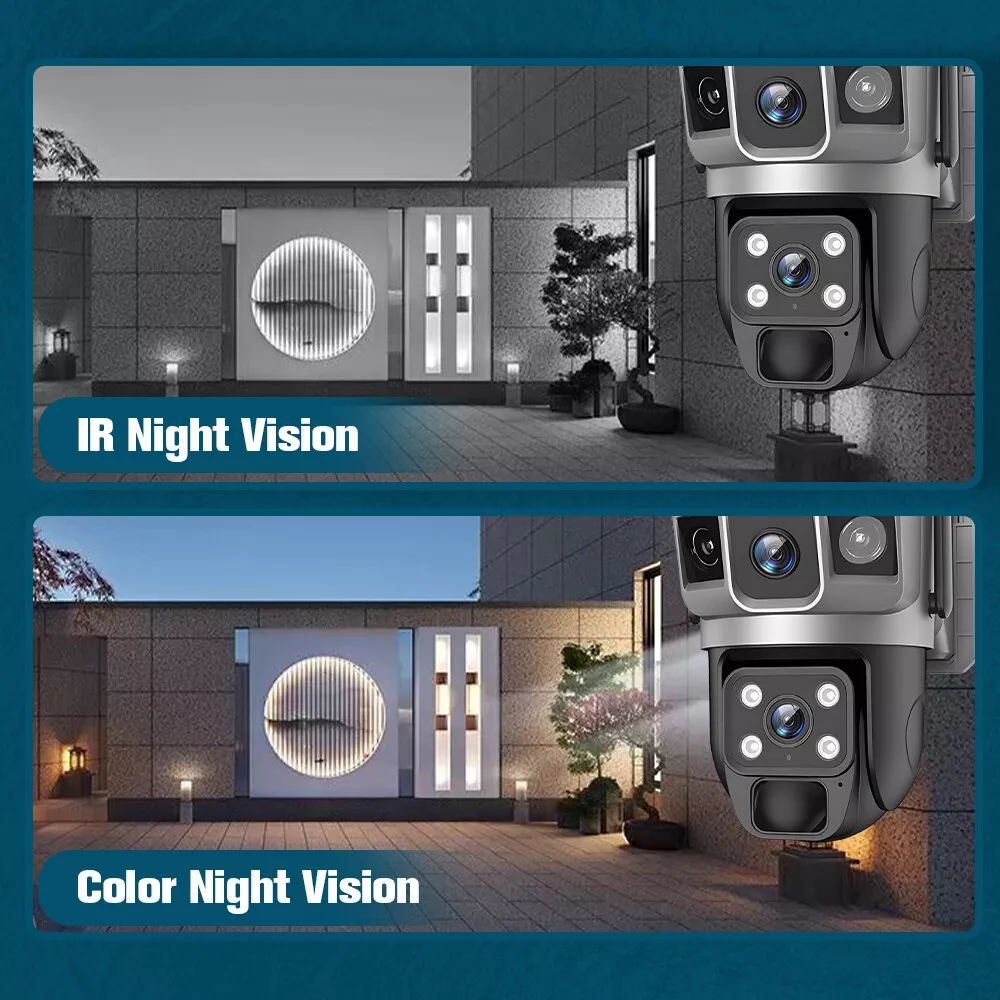 9MP Solar Camera Description Features: dual lens, dual screen viewing Option: WIFI=WIFI 2.4Hz connection 1:3MP+3MP+3MP million pixel outdoor solar monitoring camera 2. High definition: Shoot with a high-definition camera to ensure the effectiveness and quality of video shooting, allowing you to have real-time control of the outdoor environment. 3. Night vision system: optional infrared or color night vision, which can monitor the doorstep in real-time at any time to ensure safe and smooth enjoyment. 4. APP V380 Pro remote operation: functions such as remote operation, photography, and video recording, allowing remote control of the outdoor environment. 5. Voice intercom: With voice intercom function, you can transmit sound to the external environment through your phone or replay the sound to visitors through the device. 6. Custom alerts: supports custom alerts, and when you receive an alert, it will immediately send an alert message to your phone 7. Multi user remote access: Share the same camera with your family, leave everything you protect, and pay more attention to your home. 8. SD card: The maximum size of the SD card is 128GB, 9. Waterproof/Dustproof Ip66: The camera casing is made of high-quality ABS plastic and has waterproof, sunscreen, and dustproof functions. It is suitable for any environment. 10. Motion detection and automatic tracking: After locking the target, the camera will automatically adjust the pan tilt rotation. Track moving objects, cars, pets, humans, and push alert notifications to your smart Phone. Package List: 1x 9MP solar camera 1x bracket 1x solar panel with extension cable 1x installation package 1x instruction manual 1x 32GB card 4MP Solar Camera 3 screens shows on the V380 app Three images can be viewed simultaneously, and each image can be individually enlarged. Real time alerts Set up monitoring areas in advance, conduct actual testing, and promptly push alarm information. IP66 Waterproof / Dustproof The camera is equipped with IP66 case , which is waterproof, sun-proof and dust-proof. It is suitable for any environment. Clear Two Way Audio Built-in microphone and speaker / Customized new speakers with loud volume; You could talk to anyone nears the camera ( Warn someone to leave your house ). Advanced H.265 Video Compression H.265 (HEVC) doubles the coding efficiency compared with its predecessor H.264. H.265 video saves around 50% of the bit rate at the same quality of coding.H.265 only need less bandwidth,faster loading speed,more smooth video,Lower bite rate,higher image quality! 10X Zoom(Both 3 cameras support zoom) you can switch from 1X to 10X zoom instantly;it can fast zoom in or zoom out without lag;watch far and near images Simultaneously through Picture in Picture,don't miss a detail. Full Color Night Vision: When the white LED light is on, the camera will display colorful vision at night, and there are three night modes for you to choose. Ai Human Detect Alert Quickly finds human targets and immediately sends a notification to your phone, letting you see what happens anywhere. It only detects the human shape and will not trigger falsely for objects such as cars and trees. PTZ Control by APP Rotates 355° Horizontally and 90° Vertically.You can control it in the APP directly whenever you want and wherever you are. 6MP Solar Camera Specification: ● Resolution: 4MP; ● iode: 12 x IR white light; ● Night vision: 30m; ● Head: 355° horizontal rotation, 90° vertical rotation; ● PIR infrared sensor: 10m (32ft) 100 degree detection range; ● Battery standby: up to 365 days; ● IP66 outdoor battery camera; ● Cloud storage: supported; requires in-app subscription and payment; ● Local Storage: Supports micro SD card up to 128G (not built-in); ● Multi-viewing: supports sharing to up to 4 families; ● Input/Output: Built-in microphone and speaker; ● Apps: Eseecloud app; please search for this keyword on Google Play or iOS APP Store to download the app; ● Operating time: 10 months based on 3 events triggered per day; ● Operating temperature: -20°C to 60°C (4°F to 140°F); Battery powered+solar charging panel: Built in recyclable rechargeable battery, ultra-low power system optimization, energy saving, durable endurance, and long term standby with solar charging panel Picture in Picture , 8X Digital Zoom you can switch from 1X to 8X digital zoom instantly; it can fast zoom in or zoom out without lag; watch far and near images Simultaneously through Picture in Picture,don't miss a detail. Two-Way Audio Build in speaker and microphone,support clear two way voice speaking AI Auto Tracking When someone passes through the alarm area, the camera will detect the person's movement. And track people. PIR Human Detection When it is found that someone breaks into the monitoring area, the camera will immediately take a picture and push alarm to App. Full Color Night Vision When the white LED light is on, the camera will display colorful vision at night, and there are three night modes for you to choose. PTZ Control by APP Rotates 355° Horizontally and 90° Vertically.You can control it in the APP directly whenever you want and wherever you are. IP66 Waterproof / Dustproof The camera is equipped with IP66 case , which is waterproof, sun-proof and dust-proof. It is suitable for any environment.