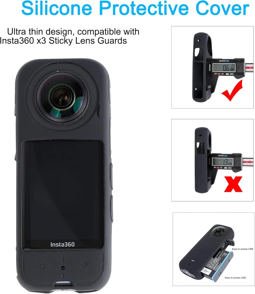 Complete accessory set designed exclusively for Insta360 X3 camera. Sticky Lens Guard with double-sided high-definition coating for crystal clear image quality. Ultra-thin silicone protective case compatible with Sticky Lens Guard, no dark edges, and does not interfere with battery/microphone. Camera protective case with concave-convex design to prevent compression and dust. Curved tempered film with ultra-clear 9H hardness and no fingerprints left. Enhance your Insta360 X3 camera's capability with PellKing Accessories Kit. This accessory set is designed exclusively for Insta360 X3 cameras and includes Sticky Lens Guard, X3 camera silicone protective case, X3 screen tempered film, and X3 mini storage bag. The Sticky Lens Guard in this set comes with a double-sided high-definition coating that provides crystal clear image quality just like bare metal cameras. It is designed to protect the camera lens from scratches and damage. The ultra-thin silicone protective case is compatible with the Sticky Lens Guard and has no dark edges, making it easy to use with an invisible selfie rod. It does not interfere with the battery hole position or microphone reception, making it perfect for prolonged use. The camera protective case in this accessory set has a concave-convex design that protects the lens and camera from compression and dust. The open design of this case is very convenient to use with an invisible selfie rod. The curved tempered film included in this kit has ultra-clear 9H hardness and leaves no fingerprints behind, ensuring that your camera always looks new. With the PellKing Accessories Kit for Insta360 X3 Camera, you can take your photography game to the next level. This kit is packed with features like the Sticky Lens Guard, silicone protective case, camera protective case, and curved tempered film. All these accessories are designed to enhance your camera's protection and image quality, making it the perfect choice for any photography enthusiast. Get your hands on this kit today and take your photography to the next level!
