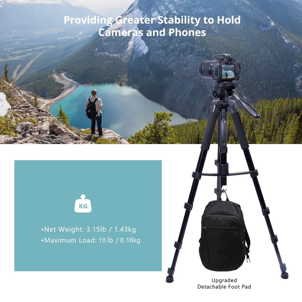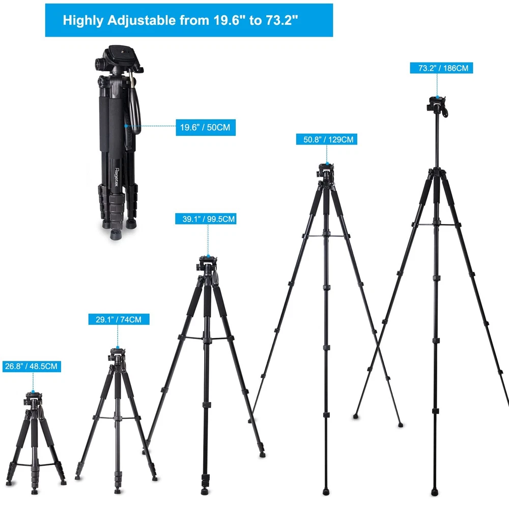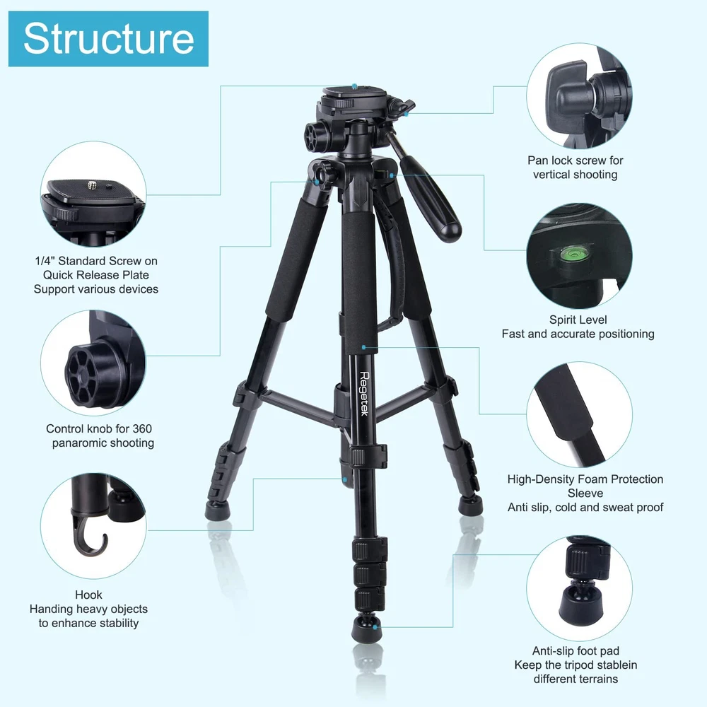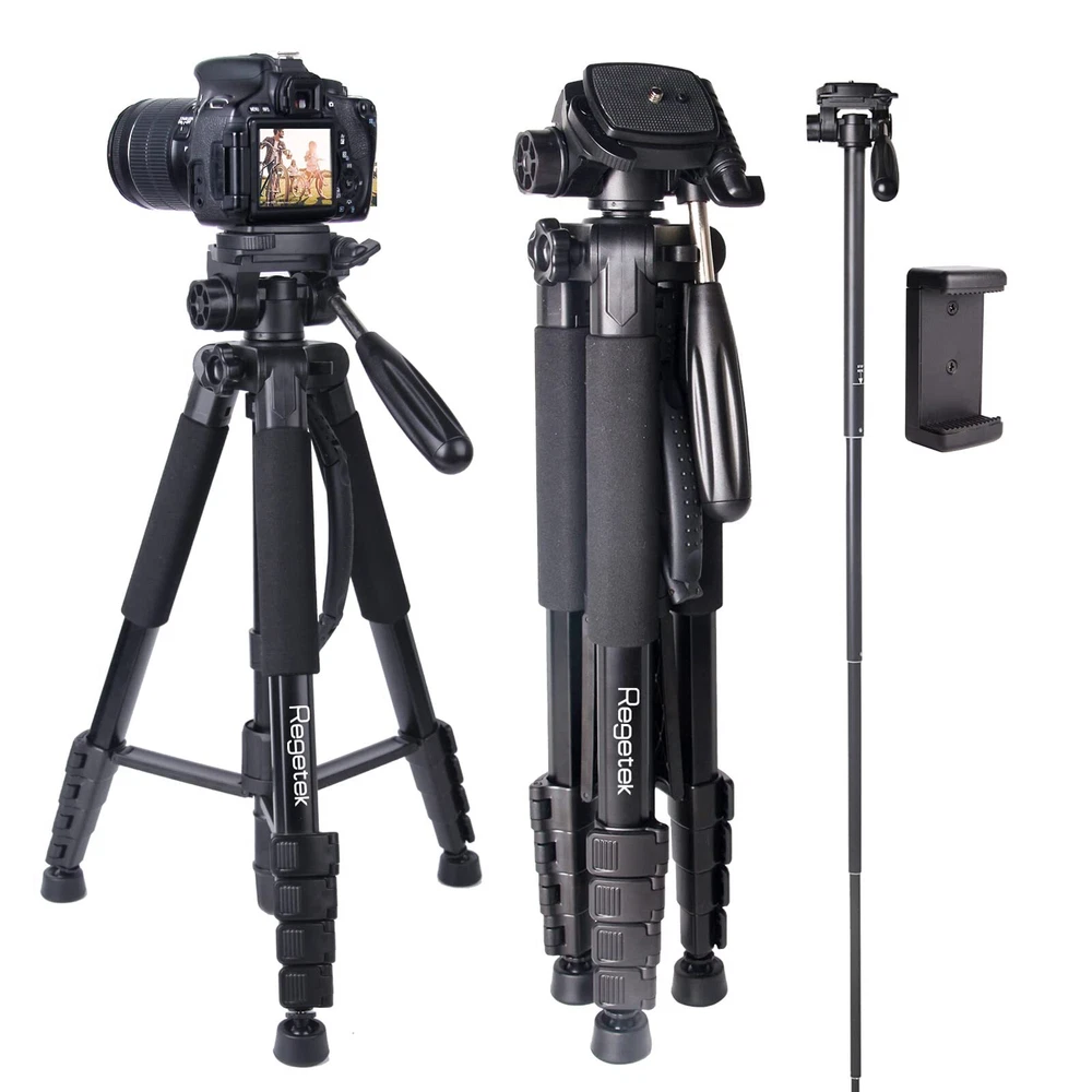 Camera Tripod with Travel Bag,Regetek 74 Inch Aluminum Cell Phone Tripod with Phone Holder, Professional Portable Tripod Stand Compatible with DSLR/SLR Cameras,Phones,Projector,Webcam,Spotting Scopes 【2-in-1 Aluminum Tripod & Monopod】The tripod can convert toMonopod. 3.15 lbs Net weight; 18 lbs Load Capacity. Foldable Feature for Travel. 【Height Adjustable】Extends from 26.8 to 74 inch with 5-section aluminum alloy telescopic leg and extended center column , enables you to create your own unique height and view while taking a picture or video.The 19.6 inches folded size is easy to put into your carry bag especially for traveling. 【Multiple Shooting Angles】 Multiple shooting angles: Landscape Mode, Portrait Mode, Low Angle Shot, High Angle Shot and 360 Degree Panoramic Shooting, which creates various angles while taking panoramic photos/videos/live-streaming. 【Wide Applicability】With Standard 1/4" Screw,the tripod work with all DSLR Cameras,Camcorder,Projector,Ring Light, Go Pro, Webcam,Spotting Scopes. with a detachable phone mount, the tripods would work with all cell phones whose width is less than 3.97 Inch. 【Sturdy Camera Tripod】Made of high-quality aluminum alloy and ABS material, this tripod stand is sturdy and durable enough to support heavy smartphones, projectors, and cameras. The reinforced triangular structure and Non-slip rubber feet makes the tripod stand more stable and more resistant to wind while outdoors shooting. SHIPPING - We offer FREE shipping on all orders! - We ship within 3 business days of payment, usually sooner - We only ship to the lower 48 states, no APO/FPO addresses or PO Boxes allowed International buyers – please note: Import duties, taxes, and charges aren't included in the item price or postage cost. These charges are the buyer's responsibility. - Please check with your country's customs office to determine what these additional costs will be prior to bidding or buying. - We have confidence in our products, but if you are not fully satisfied please contact us within 30 days of purchase and you will get full refund. * Order Cancellation Policy ** You can return a product for up to 30 days from the date you purchased it. 1. The seller reserves the right to cancel the special case only due to eBay cancellation fee. 2. The decision of seller is the final. 3. The seller will respond to the cancellation request within 2 business days. Please wait for the result of cancellation. 4. In case the cancellation is not completed by some reasons, the buyer can follow the options below to get the refund. 4.1 The buyer can reject the item when it arrives. 4.2 The buyer can send the item back to the seller within 30 days If the buyer receives item (USA Shipment ONLY). The seller will provide the FREE return label to the buyer when the buyer opens " Return Item" case on eBay by using the reason as "Change my mind" ONLY. 5. When buyer has placed the order. The order will be processed and completed by automatic warehouse system within 5 minutes. In case that buyer sends the cancellation request after 5 minutes of placing the order, the request will be rejected. **Sending direct message to cancel the order is not allowed for every case.* Return Policy For the return case - If buyer would like to return the items for refund or replacement, please CONTACT SELLER to receive the free return label from seller. The refund or replacement will be processed with the tracking number of return label which is provided by seller only. The other ways of return which are not approved by seller will not be processed for the refund or replacement.