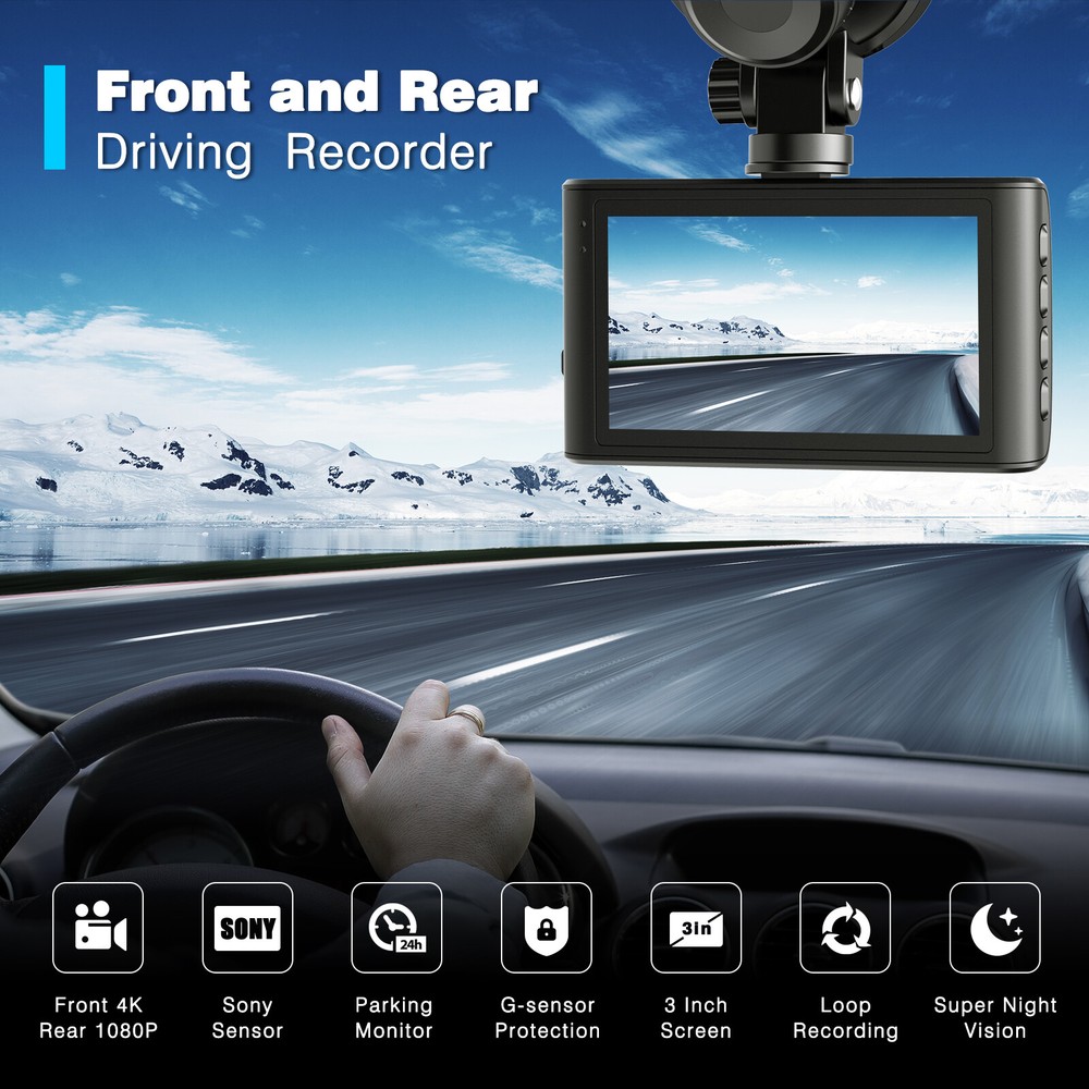 You may also like TOGUARD Dual Dash Cam 1080P+1080P Front and Inside Car Driving Camera 64GB Card 52.69 USD Free shipping TOGUARD 4K Dual Dash Cam UHD 2160P+1080P Front Rear Car DVR Camera night vision 67.59 USD Free shipping TOGUARD 12" Mirror Dash Cam 4K GPS Backup Camera Front and Rearview DVR Recorder 89.29 USD Free shipping TOGUARD 3 Channel 4K GPS Dash Cam Car Recorder Camera Night Vision G-Sensor 69.41 USD Free shipping 9"2.5K Dash Cam Car Stereo Radio Wireless Apple Carplay&Android Auto+Rear Camera 89.21 USD Free shipping TOGUARD Dual Lens 4K Dash Cam Front Rear Car Video Camera Night Vision G-sensor 49.29 USD Free shipping Campark 4K+1080P Dual Dash Cam Ultra HD Front and Rear Car camera 3 Inch Dash Camera for Cars with Night Vision, Loop Recording, Parking mode, G-Sensor, Support 256GB US Stock!!! Fast delivery, Received quickly! Keywords: Native 4K+1080P front and rear dash camera: Simultaneously capturing the road at 4K(3840 x 2160/front lens) and 1080P(1920 x 1080/rear lens) resolution, this dual dash cam offers amazing video quality which is four times clearer than a normal dashcam. License plates, road signs and scenery can all be clearly recorded with this car camera. 24 Hours parking security monitoring: The dash camera for cars will automatically record a short video when it detects a sudden bump or impact, providing your car with 24-hour protection. Hard wire kit is needed for this function. ickable than ordinary adhesive.kit is needed for this function. Super night vision & WDR: The F1.8 wide aperture and advanced sensor gathers more light and eliminates the need for an auxiliary light source even in low-light environments. With the latest WDR technology and 6-layers glass lens, it can automatically adjust exposure, which helps capture road signs, license plates and other details that usually cannot be read at night. Seamless Loop Recording: The loop recording will record video in 1/3/5-minute clip, and automatically overwrite the oldest UNLOCKED file when your micro SD card is full. Free your hands from manually canceling unnecessary videos. G-Sensor: When the built-in G-Sensor detects a sudden collision, it will automatically lock the current video, avoiding the video being overwritten in loop recording mode and protecting important evidence. Sensitivity can be adjusted. (We recommend to set it to ‘Low’) H.265-High efficiency video coding (HEVC): Supporting H.265 video compression technology, which is more efficient than H.264 based on the same video quality. With faster compression efficiency and more capacity saving, H.265 is the most suitable 4K compressed video coding standard at present. Front and Rear Wide Angle: With 170 degree front and 140 degree rear ultra-wide dual lens, the dash cam can provide you a full view of 5 lanes of the road, which eliminates the blind spots of your vision and provides greater security. Easy installation: The installation of the rear camera is easier than other dash cam. Just determine the best position of rear camera and stick it to the windshield. The rear camera uses 3M adhesive, which is much more viscous, temperature-resistant and stickable than ordinary adhesive. Package Included: 1 x 4K Front Dash Cam 1 x 1080P Rear Cam 1 x Car Charger 1 x Suction Cup Mount 1 x User Manual 1 x Crowbar 1 x Stickers 4 x Cable Clamps Campar 4K dual dash cam Equipped with the front camera with 3840*2160P@30fps and the rear camera w ith 1920x1080P@30fps. The car dash cam offers you crystal clear videos and pictures. Best Dash Cam for Uber, Taxis, Rideshare, Commuters and Families who provides better driving protection for driver and passengers. Display: 3 inch LCD Front/Rear Lens: F/1.8 aperture 6-glass HD lens Video format: MP4 Screensaver: Yes Audio Recording: Yes Working voltage: DC 5V/2A Storage: Micro SD card 16-32GB Class 10 or above, up to 256G (SD card NOT INCLUDED) Superior High Definition Dual Dash Cam: 4K(Front)+1080P(Rear), 1080P(Front)+1080P(Rear). Equipped with a 3-Inch Ultra HD IPS screen, the Campark DC30 4K Dash Cam provides you top-quality videos and an excellent visual experience, monitoring the roads ahead and behind the car simultaneously. 24 Hours Parking Monitoring The dash camera for cars will automatically record a short video when it detects a sudden bump or impact, providing your car with 24-hour protection. Hardwire kit is needed for this function. Please contact the Campark support team on how to get it. Outstanding Night Vision With an F1.8 6-glass lens and advanced WDR technology, this dashboard camera can automatically capture more lights, adjust the brightness to take clear, color-accurate video even in low-light environments. G-Sensor When the built-in G-Sensor detects a sudden collision, it will automatically lock the current video, avoiding the video being overwritten in loop recording mode and protecting important evidence. Sensitivity can be adjusted. (We recommend setting it to ‘Low’) 360° Rotatable 360° rotation and 150° tilt allow you to find the ideal angle to record every driving moment. Besides, this dash cam supports up to 256GB micro SD card. Seamless Loop Recording The loop recording will record video in the 1/3/5-minute clip, and automatically overwrite the oldest UNLOCKED file when your micro SD card is full. Free your hands from manually canceling unnecessary videos Warm Tips: 1.This dashcam requires a constant 5V/2A external power supply. Please keep the included power adapter plugged into the cigarette lighter. 2.Class 10, U1-U3 Speed Micro-SD Card for 4K Video is required. We recommend using a branded (like SanDisk), U3, or above Micro SD card. Maximum support 256GB. (The SD card is NOT included) 3. Please DON’T USE any “SanDisk Ultra” or "Generic Class 10 for HD Video" Cards from third-party sellers. For the U1 Micro SD card, please make sure that it is a branded, high-quality micro SD card, or it can't be used for this 4K dashcam. 4. For daily use, please adjust the sensiti