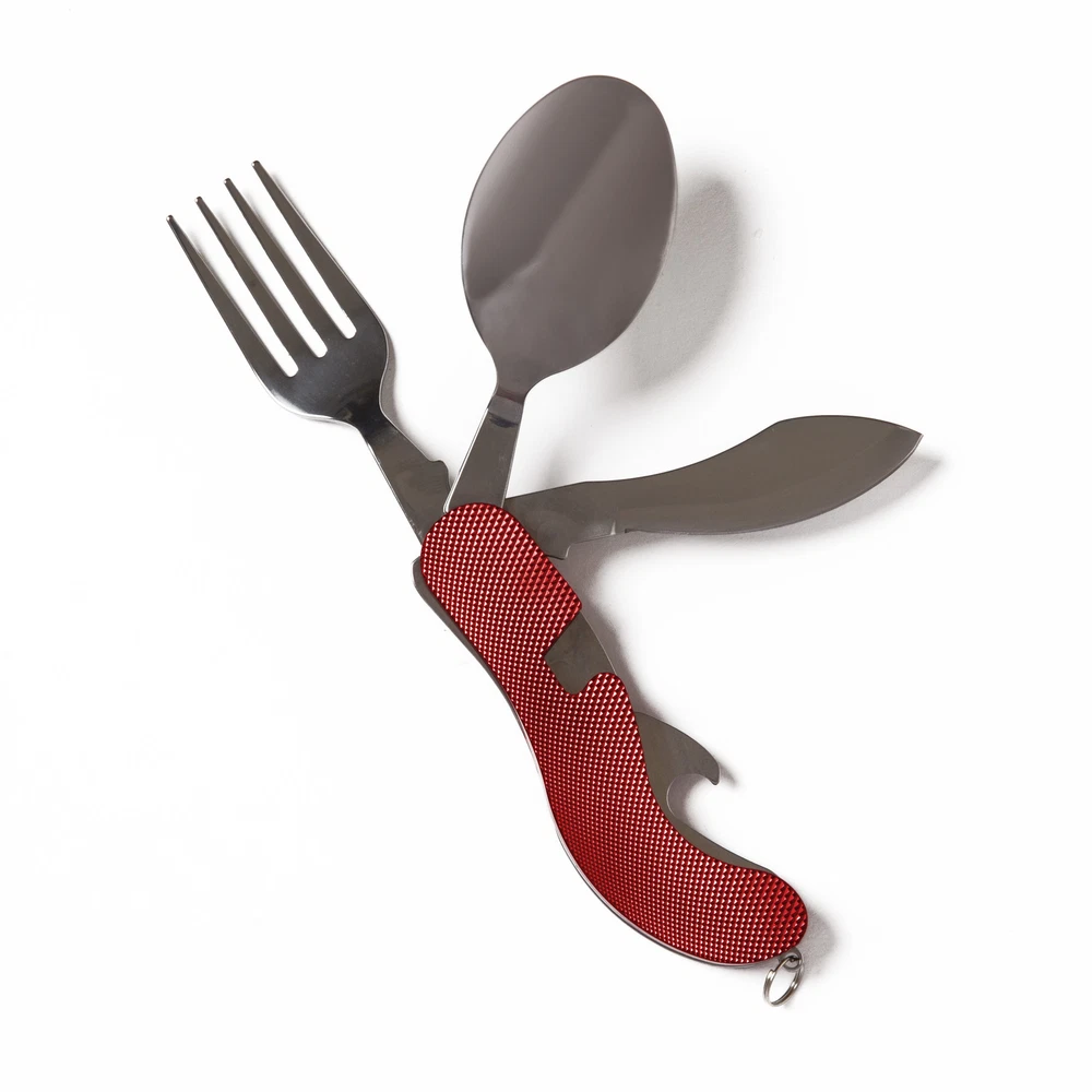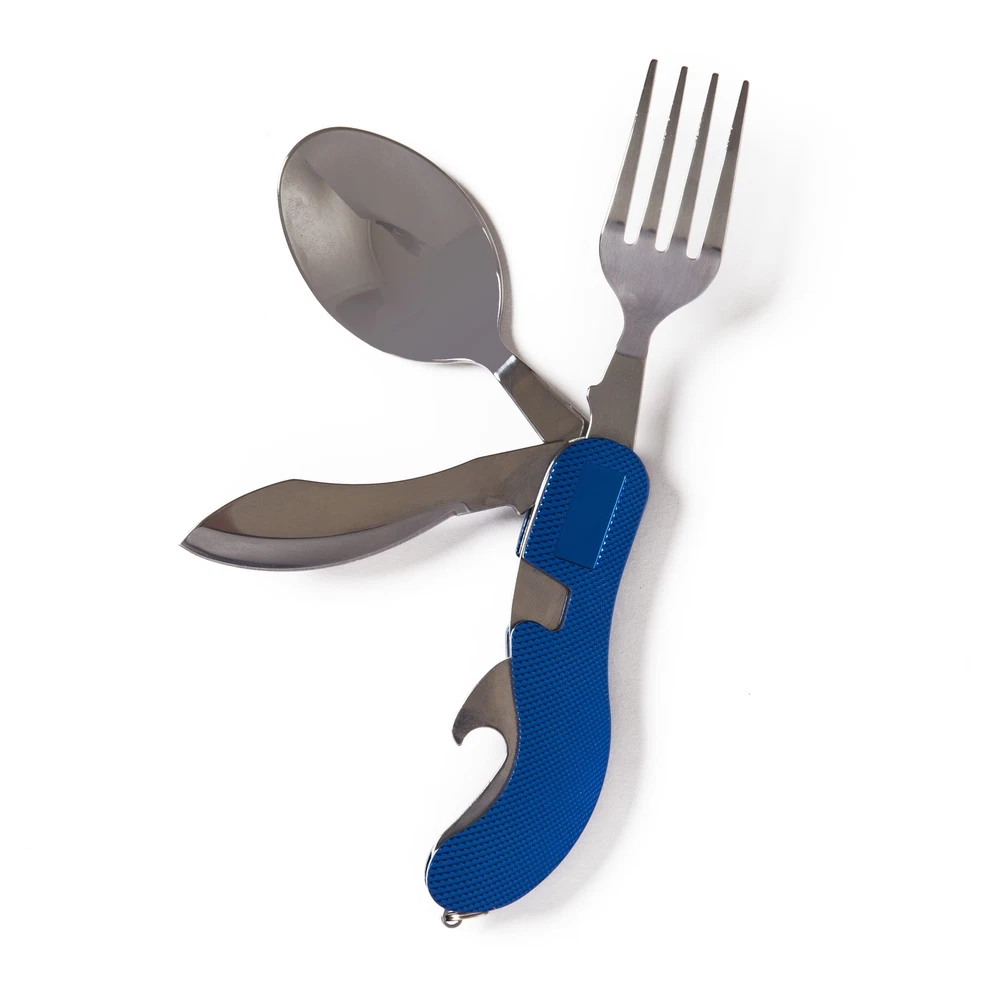 Stainless Steel Camping Cutlery (4 in 1) Detachable Into 2 Pcs. Pocket knife and camping utensils all in one with keyring on end to hook on keychain, backpack, or other travel accessories. 4-piece cutlery set: includes removable fork, spoon, knife, and can/bottle opener. Great for camping, hiking, and other outdoor activities. No more disposable plastic utensils: better for the environme. Type: UtensilsAssembly: AssembledColor: Blue, Red Free Shipping Over $49.99* Details Camping Cutlery Set Product Description: Stainless Steel Camping Cutlery (4 in 1) Detachable Into 2 Pcs. Pocket knife and camping utensils all in one with keyring on end to hook on keychain, backpack, or other travel accessories. 4-piece cutlery setincludes removable fork, spoon, knife, and can/bottle opener. Great for camping, hiking, and other outdoor activities. No more disposable plastic utensilsbetter for the environme. TypeUtensils AssemblyAssembled ColorBlue, Red