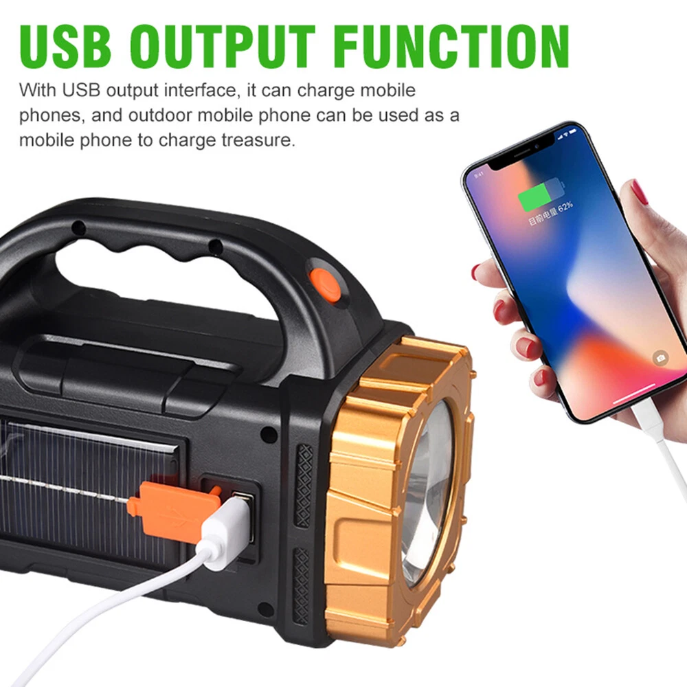 Store Home Promotion Hot Item Add to Fav Contact us Feedback New arrival travelstylespot^-^ Merry Christmas Home & Garden Crafts Clothing, Shoes, Accessories Baby Sporting Goods Jewellery & Watches Computers/Tablets & Networking Vehicle Parts & Accessories Health & Beauty Phones & Accessories Pet Supplies Industrial Toys, Hobbies Cameras Electronics Musical Instruments Video Games & Consoles Home Entertainment Home Appliances Business Collectables Dolls, Bears Prodcution Description : Camping Lantern USB Rechargeable 1500mAh Camping Flashlight Power Bank IP44 Waterproof Camping Torch for Tactical Camping Hiking Feature: 1. Eight Lighting Modes: Designed to meet various lighting needs, this high power led flashlight offers white light, blue light, and red light modes. Whether you're camping, hiking, or in an emergency situation, you'll have the right lighting option available. 2. USB Rechargeable + Solar Charging: Say goodbye to constantly replacing batteries. This multifunctional portable light can be easily recharged via USB or solar power, ensuring long-lasting and eco-friendly usage. Stay prepared and save money on batteries. 3. Multi-functionality: In addition to being a powerful spotlight, it also functions as an emergency power source for your mobile phone. Charge your phone when needed, keeping you connected in critical situations. 4. Everyday Waterproof: With its daily waterproof design, this portable searchlight can withstand rainy conditions, making it reliable for outdoor activities even during wet weather. Enjoy peace of mind knowing your flashlight won't let you down. 5. Focus Beam Technology: Equipped with a focused beam cup, this camping torch can project light over long distances. Illuminate large areas or zoom in for precise lighting, providing excellent visibility wherever you need it. Specification: Certification: CE Origin: Mainland China Body Material: Plastic Battery Type: Lithium Metal Color (optional): Red and Blue Light, Gold Red-Blue Light, Silver White Light, Gold White light, Silver Bulb: LED+40*SMD+C0B Battery type: 4.5V Ni-MH battery Battery capacity: 1500mah Input current: 5V-2A Charging: solar powered USB charging Waterproof: IP44 Material: ABS Weight: 218g (with battery) Product Size: 159.00x105.00x77.00mm/6.26x4.13x3.03inch Note: Due to the different monitor and light effect, the actual color of the item might be slightly different from the color showed on the pictures. Thank you! Please allow 1-2cm measuring deviation due to manual measurement. Included 1 x High Power LED Flashlight Pictures PAYMENT DELIVERY WARRANTY PAYMENT We accept PayPal only. All major credit cards are accepted through secure payment processor PayPal. Payment must be received within 7 business days of auction closing. If you have bought multiple items from me, you can send me one payment for all the items instead of paying for them individually. When you click the Pay Now button, eBay will automatically determine if there are other items you have won or purchased from me and will combine them for your review. NOTE: Import duties, taxes and chargers are not included in the item price or shipping charges. These charges are the buyer's responsibility. Please check with your country's customs office to determine what these additional costs will be prior to bidding buying. DELIVERY 1. We Ship to Worldwide. 2. Items will be shipped within 2 business day on payment received. 3. Item are shipped from shenzhen using Airmail, reach most of the countries within 10 to 20. 4. Delivery time depends on destination and other factors, it may takes up to 20 business days. WARRANTY 12 months Warranty. Buy with confidence! If you are not satisfied when you receive your item, please return it within 14 days for a replacement or money back. Please contact me before you return it. If item is defective in 3 months, We will send you a replacement without extra charger, or offer refund after we receive the defective item. If item is defective after 3 months, you can still send it back to us. We will send you a new one after receiving the defective item. But you have to pay the extra shipping fee.