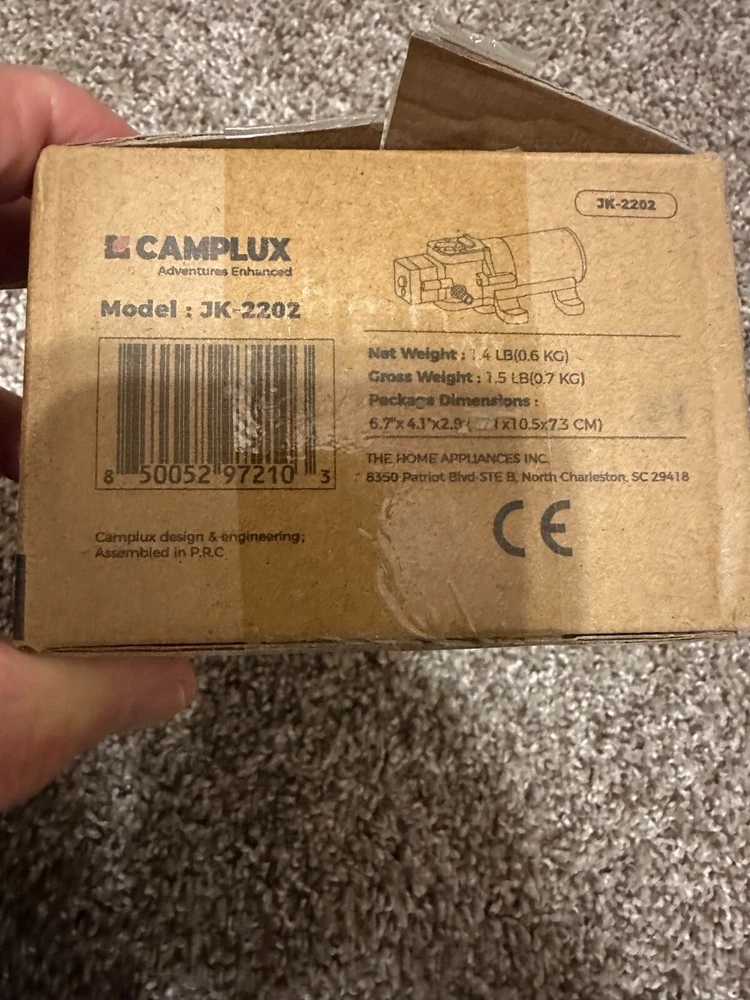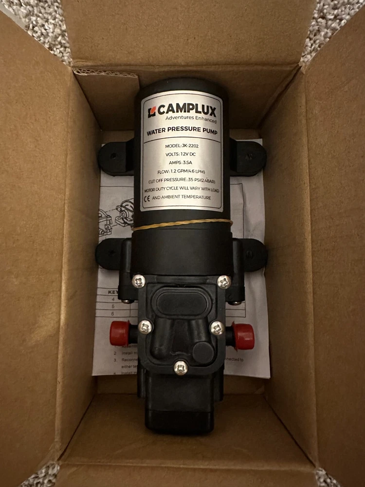 You are purchasing a BRAND NEW / NEVER INSTALLED / OPEN BOX Camplux 12V DC Water Pump 1.2GPM 4.3 L/Min Diaphragm Pump for RV/Boats. I purchased and never used and missed the return window. My loss is your gain. Note: I do not ship to Lock, PO or APO Boxes. I only ship to the lower 48 US States at the shipping cost shown, as well as "Free Shipping". If you are in AK, HI or a US Territory, please contact me through eBay before you purchase to see if there are any additional shipping charges. If you are an international Buyer, I ONLY ship using the eBay Global Service. Thank you for your understanding. Your payment is required immediately upon completion of your purchase. No Warranty, Guarantees or Returns.