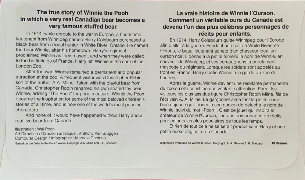 Canada Post 1621a Winnie Pooh Block Special Hunny Postmark Walt Disney World Would make a nice gift for a child to encourage interest in Stamp Collecting. First Day Cover Collecting Postage Stamp and Covers is a fun way to learn History and about Great People. My Stamp Collecting has enabled me to answer correctly a lot of trivia questions! If you buy multiple items please use the shipping cart when possible. BUY with confidence Feedback Selling on eBay for over 25 Years Many repeat buyers. 99.9% Positive Feedback (I am not perfect) Note: In some cases I use stock photos, therefore the item may vary very slightly from the scanned image . I leave positive feedback for all my buyers immediately (or shortly after) payment is received. I never wait for a buyer to leave me feedback first. I have had almost 100,000 transactions on eBay. Member American First Day Cover Society (Life Member) American Philatelic Society Ebony Society of Philatelic Events and Reflections (ESPER) International Buyers - Please Note: Import duties, taxes, and charges are not included in the item price or shipping cost. These charges are the buyer's responsibility. Please check with your country's customs office to determine what these additional costs will be prior to bidding or buying. Powered by SixBit's eCommerce Solution