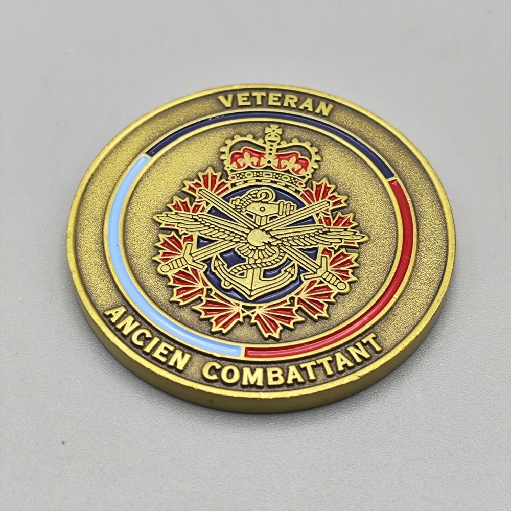 TITLE-- Canadian Army Veteran Ancien Combattant Challenge Coin SIZE-- Measures approx. 1.72 inches Used coins have imperfections, please see pictures SHIPPING -- Ships within 5 days of receiving payment. Your purchase will be carefully packaged and you can always check tracking information on eBay Purchase two and more and get a discount on shipping SERVICES -- If you have any questions, you can contact us at any time, we will reply you as soon as possible to solve your problem If you are not satisfied with your purchase for any reason, please contact us before leaving neutral or negative feedback, we will solve the problem for you properly