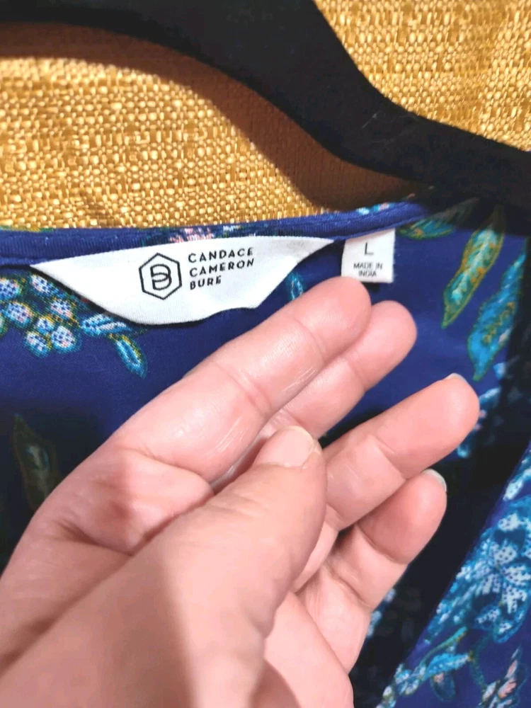 This Candace Cameron Bure dress features a beautiful floral pattern in a stunning Clematis Blue color. With a V-neckline and 3/4 balloon sleeves, this dress is perfect for any occasion, whether it's a casual day out or a wedding or travel event. The dress is made from a lightweight, comfortable knit fabric that is a blend of spandex and modal materials. The dress is an A-line style with a knee-length hemline and a button-front closure. It also includes accent buttons and a tie waist to accentuate your curves. This dress is perfect for the spring and summer seasons and is sure to turn heads with its elegant design and comfortable fit. This dress is in excellent condition. No rips, stains, tears, snags, or runs. It is beautiful, bright, and is in new without tags condition!