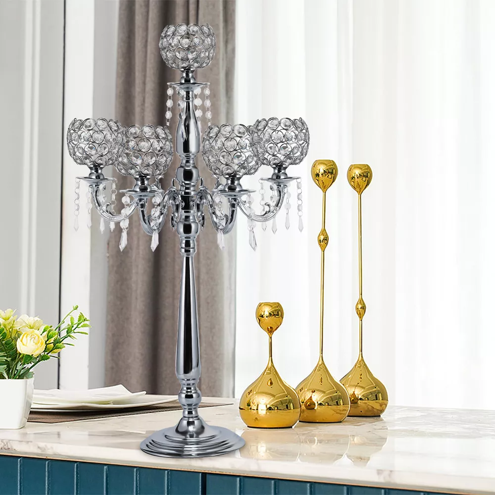 Specification Color: Silver Style: Stylish, Luxurious Material: Iron, Glass, and Acrylic Surface Treatment: Electroplating Applicable Candle Diameter: 5.5cm/ 2.17in Each Head Diameter: 10cm/ 4in Base Diameter: 36cm/ 14.2in Candle Holder Height: 75cm/ 29.5in Candle Holder Width: 55cm/ 21.6in Package Size: 50*24*24cm/ 19.69*9.45*9.45in Net Weight: 4.5kg/ 9.92lbs Gross Weight: 5kg/ 11.02lbs Package Included 1* Five-arm Candelabra Candelabra 5 Arms Tall Floor Crystal Candlestick Holders for Pillar Candle European Style Long Table Crystal Candlestick Hotel Wedding Decoration Candlestick Decoration Romantic Atmosphere Candlestick Christmas Decoration D escription 🕯 🎅 _ Classic and timeless! Let's add a touch of old-time beauty to the tabletop and dinner setting with this five-arm candle holder, adding a pleasant and soothing mood to your dinner! With its elegant design, it is not only a candle holder but also a decoration in your room. It can be placed in your living room, bedroom and study. It can also be used as a gift for your family or friends! KEY FEATURES 🕯 5 Candle Arms The 5 arms fit all candles within 5.5cm/ 2.17in diameter. And they are set at different heights, creating a symmetrical visual appeal for you. Top Candle Holder The top candle holder is designed like the shape of a cup, and the edge is raised to ensure that the candle can be placed on it stably. Application This five-arm candelabra can be placed in the living room, bedroom, office, etc. It is also a novel gift for the graduation ceremony, anniversary, New Year, Christmas, and some other festivals. Fine Workmanship Each candle head is made of selected high-quality glass beads, and its openwork carved design conveys a sense of natural freshness and dignity. And it uses all-metal welding. Elegant Design Sparkling crystal drops glisten in the light and beautifully reflect the light onto the curved branches. Stable Placement The base of this candle holder is a 36cm/ 14.2in diameter disc design. The enlarged round base is more solid. _WHAT'S MORE_ Atmosphere Maker: Let the light be present and bring you a soothing atmosphere with candlelight. Light up the night and enjoy a spectacular candlelight show. Light Weight: With a weight of 4.5kg/ 9.92lbs, the five-arm candelabra is light enough to be moved anywhere you want, facilitating your daily use. Ideal Gift: The elegant silver look combined with the delicate engraving style gives this candle holder a gorgeous appearance, making it a great decorative piece. You can give it as a gift to your friends or family. Ideal Decoration: Put the finishing touches on dining tables with a piece of classic art. Design and decorate exquisite tables for indoor or outdoor parties or weddings. High Durability: This five-arm candelabra is made of iron, glass, and acrylic material with electroplating treatment, which makes it rust-proof and durable, allowing you to use it for a long time without worrying about fading. Easy to Clean: You can easily clean it without much effort and time because of its smooth surface and fewer gaps. If there is dust, just wipe it off with a towel. Easy to Install: The body of the candle holder is already assembled and you just need to join them together to get an elegant 5-arm candle holder! Specification 🕯 Color: Silver Style: Stylish, Luxurious Material: Iron, Glass, and Acrylic Surface Treatment: Electroplating Applicable Candle Diameter: 5.5cm/ 2.17in Each Head Diameter: 10cm/ 4in Base Diameter: 36cm/ 14.2in Candle Holder Height: 75cm/ 29.5in Candle Holder Width: 55cm/ 21.6in Package Size: 50*24*24cm/ 19.69*9.45*9.45in Net Weight: 4.5kg/ 9.92lbs Gross Weight: 5kg/ 11.02lbs Package Included 1* Five-arm Candelabra 🧐Notes Please use a soft, dry cloth for cleaning. Please note the safety rules for fire and candles. And we recommend using electronic flameless candles instead of burning candles. Please allow the slight color difference caused by the shooting light and 1-3 cm error due to manual measurement, and make sure you do not mind before ordering. Payment Delivery details Terms of sales About us Contact us Payment We accept ebay payment 。 Fees such as import duties, taxes are not included in the item price or shipping costs. These charges are the buyer's responsibility. Delivery details Shipping: 2-9 working days to: USA Terms of sales We maintain high standards of excellence and strive for hundred percent customer satisfaction. Feedback is very important to us. We hope that you contact us immediately before you give neutral or negative feedback, so that we can address your concerns. It is impossible to address issues if we do not know about them! About us Your satis faction is our ultimate goal. We work hard to earn your trust and future business. Our certified technicians have tested each item before shipping. The unit comes with 1 year limited warranty on all manufacturing defects. a) If you receive a defective item, you may return it or ask for a discount. Please contact us within 14 days after you receive the package. b) What you returned must be intact and in its original packaging as re? u. Customer is responsible for shipping costs of the returned item. c) We will cover the cost of shipping back t with the shipping rate indicated in the registration page. We will send you a new unit or refund the full payment you paid. Thank you. Contact us Business Hour Business Hour: Monday To Friday: 8:30 AM to 5:00 PM (Beijing China time) Due to time zones, our reply to your questions may not be immediately. But within above working time, we will reply your email within 24 hours. If it's non-workdays, please kindly be patient and wait till Monday. Please contact us with ebay message. Please feel free to contact us if you have any questions. Monday To Friday: 8:30 AM to 5:00 PM (Beijing China time) Due to time zones, our reply to your questions may not be immediately. But within above working time, we will reply your email within 24 hours. If it's non-