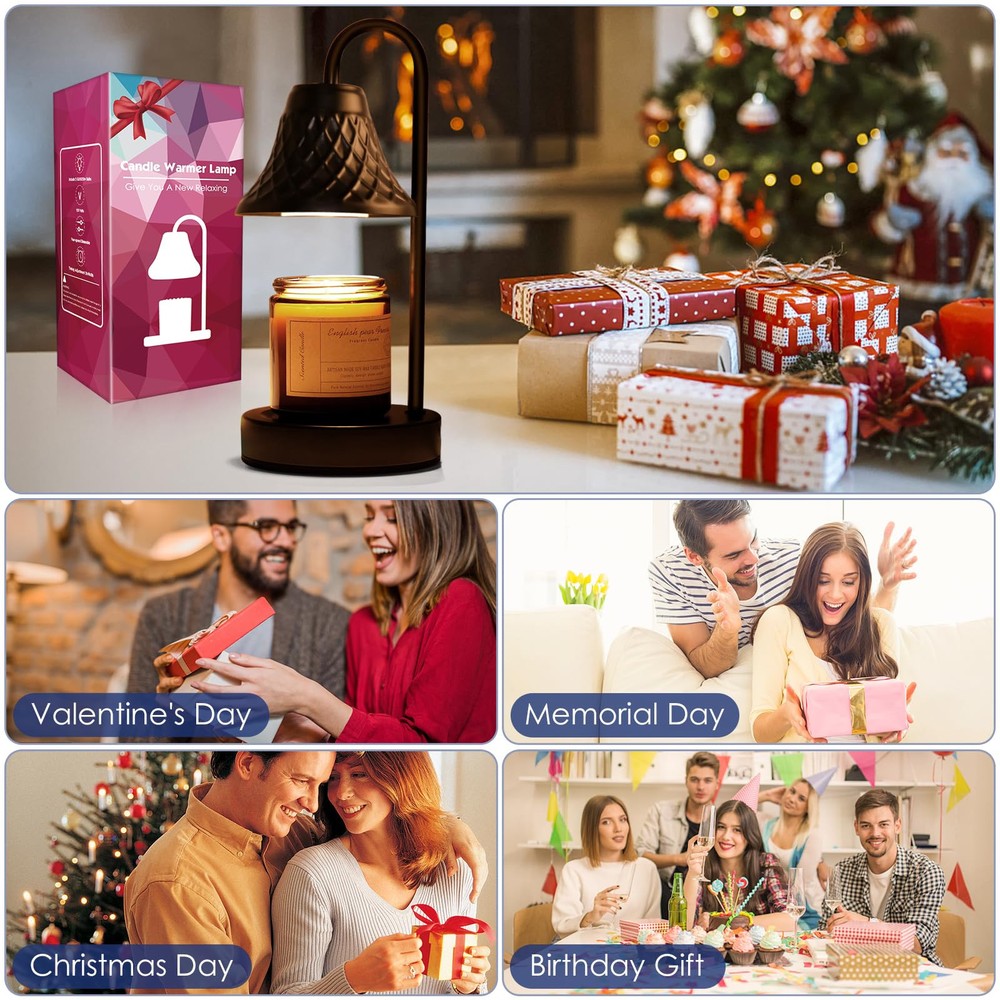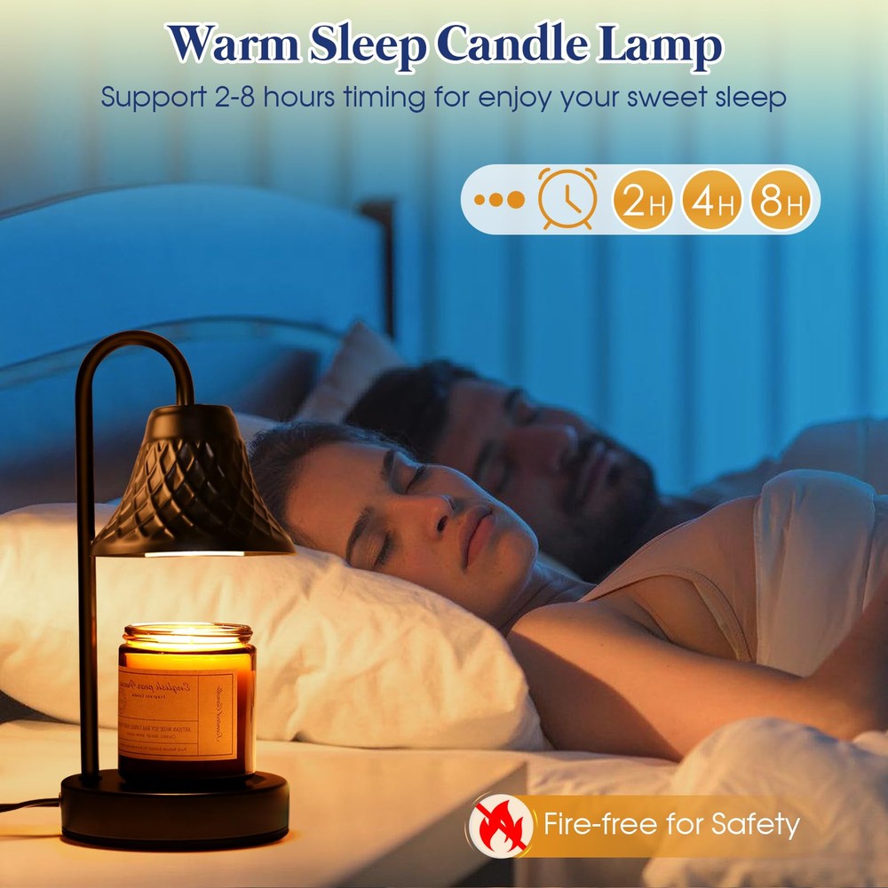 Illuminate Warmth, Relieve Stress: 4-Level Brightness Adjustable Scented Candle Lamp. Our wax warmer for scented wax is thoughtfully designed with 4 brightness levels (25%, 50%, 75%, 100%), allowing you to freely adjust the light intensity according to your mood and occasion. The soft glow paired with delightful aromas instantly creates a soothing and comfortable environment, helping you effectively relieve stress and enjoy every moment Fall Asleep Easily, Enjoy a Quiet Night: Our candle warmer lamp with timer is specifically designed to help you fall asleep faster, featuring smart timer settings (2H, 4H,, 8H,). 2-hour timer, Perfect for short relaxation sessions or pre-sleep reading. 4-hour timer, Provides a continuous comforting atmosphere for extended meditation or deep relaxation. 8-hour timer: Offers all-night companionship, ensuring you sleep soundly in a warm and cozy environment. Using our candle warmer with timer for a long time, the right light and fragrance can help regulate the body clock and promote better sleep Guard Your Family's Safety, Warm Every Moment: Invest in the Safety and Happiness of Your Loved Ones with Our Candle Lamp! Our candle warmer lamp is equipped with two 35W halogen bulbs, providing a safer and more reliable lighting solution for families with children and pets, helping to avoid potential fire risks. Turn it on and it lights up immediately, reaching optimal brightness quickly. Whether you're reading with your child at night or creating a warm ambiance, it meets your needs. Illuminate Your Home, Embellish Your Life:Choose our candle warmer lamp black, and you're not just selecting a lighting tool but adding a beautiful piece of art to your home. The unique rhombus-shaped lampshade adds a touch of fashion and artistry, making it a standout feature in any room.Crafted from durable metal, and treated for anti-oxidation to ensure it remains shiny and new even after prolonged use. The sturdy base design ensures stability and safety, making it perfect for families with children and pets. The Best Present for Candle Lovers: Electric candle warmer lamp for jar candles is an amazing present! A practical and decorative candle warmer with timer. Especially suitable for expressing love to family, lovers or friends on Mother's Day, Father's Day, Valentine's Day, housewarming or other holidays and special occasions. Functional decorative nightlight for bedroom decor, living room decor aesthetics, study, office, yoga room or spa Precision Heating Without Open Flame: No complicated equipment is needed, just a candle warmer can achieve the function of the saucepan. Safely melt chocolates, warm wines, and soften cheeses with adjustable heat settings,eliminating messy stovetop spills while creating ambient lighting for dessert parties or romantic dinners. The candle warmer lamp, with its unique design, ensures even heating and maintains the best taste of food.