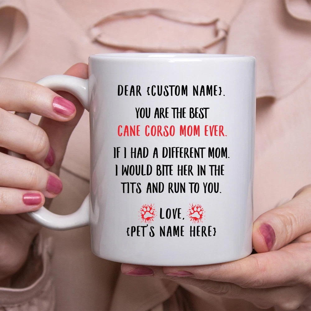 Cane Corso Mom Gift Personalized Mothers Day Gift Mug Custom Name Gifts For Dog Product Details.. This high quality 11oz. ceramic white mug has a premium hard coat that provides crisp and vibrant color reproduction sure to last for years. Perfect for all hot & cold beverages. The highest quality printing possible is used. It will never fade no matter how many times you wash it. Material: 100% Ceramic. Print both sides. Dishwasher and Microwave Safe. High Gloss + Premium White Finish. Printed in the U.S.A. Personalized & Custom. We support personalized and custom mug to add custom, when placing an order, you can add notes to the "order note" in shipping address section. Also you can contact us directly via message. Shipping Info. Ready to ship in 1 to 2 business days, All products are made-to-order and proudly printed in the United States. Shipped by USPS and DHL, You will receive your order in 5-7 days. Replace & Refund. All products are defective during shipping broken, chipped will be replaced free of charge. You are not satisfied with the product, we will refund 100% money to you. If any other issues arise, please do not hesitate to message, we would be more than happy to assist you.