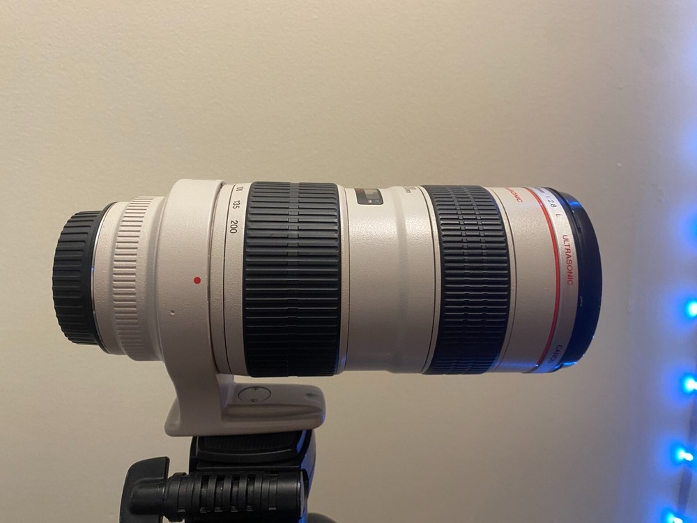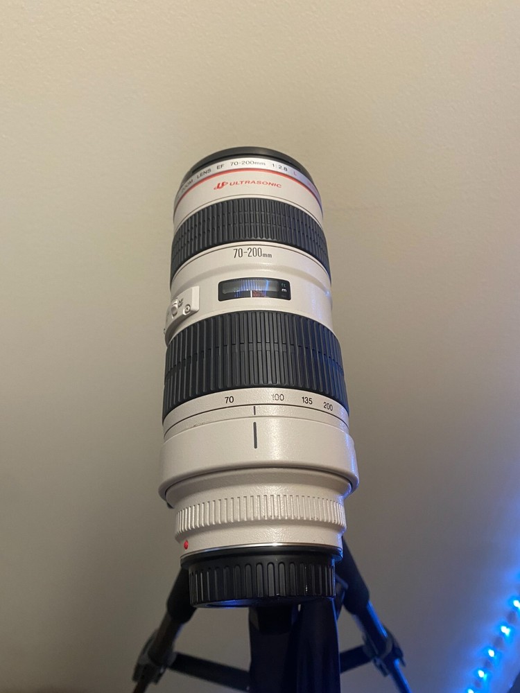 The Canon EF 70-200mm f/2.8 USM Telephoto Zoom Lens is designed for Canon EOS digital SLR cameras. This high-quality lens features a maximum aperture of f/2.8, providing excellent low-light performance and depth of field control. With a versatile focal length range of 70-200mm, it is suitable for capturing a variety of subjects from portraits to sports events, thanks to its fast and accurate Ultrasonic Motor (USM) autofocus system. The lens is constructed with an aluminum exterior, making it durable and lightweight for on-the-go shooting. Used but great quality. Minor scratches on the body but the glass is in perfect condition the image is not affected at all.