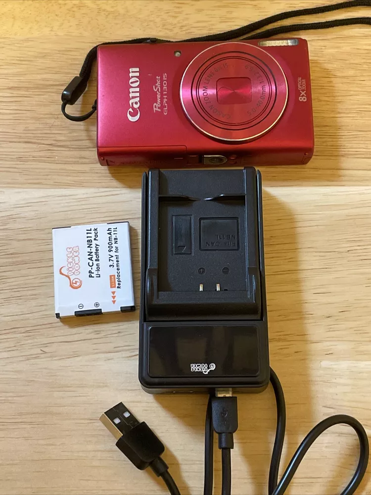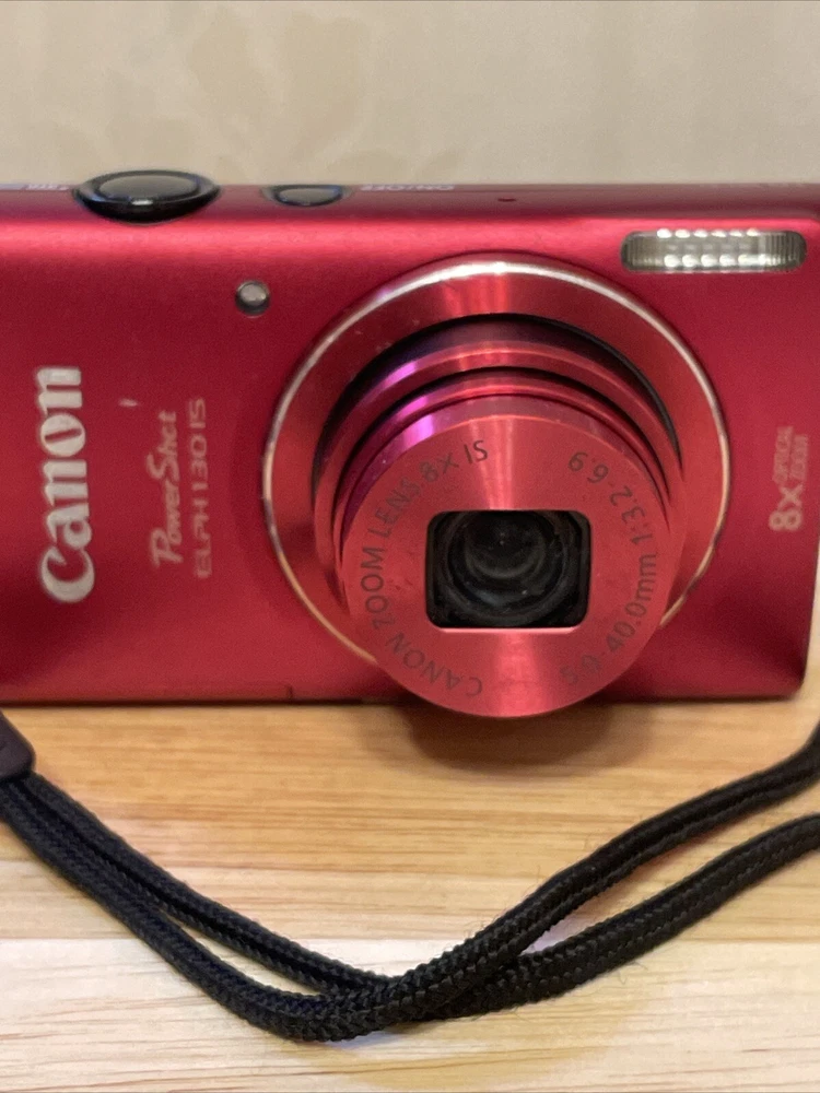 Camera takes excellent quality photos. Comes with NEW aftermarket battery and charger. NO SD Card. Capture life's moments with the vibrant Canon PowerShot ELPH 130 IS, a sleek red digital camera that combines style with function. Boasting a 16MP maximum resolution, this camera ensures your photos are crisp and full of detail. Its 8x digital zoom allows you to get closer to your subjects without sacrificing image quality, making it ideal for everything from family events to everyday adventures. The PowerShot ELPH 130 IS is part of the trusted Canon series and is designed for ease of use and convenience. With its compact form factor, it's perfect for capturing memories on the go. Whether you're a seasoned photographer or a casual user, this camera is a reliable choice for documenting your world in stunning color and clarity.