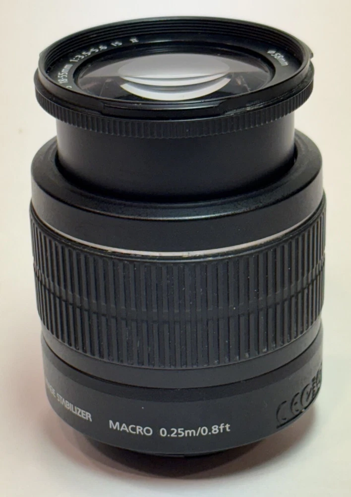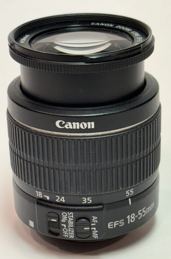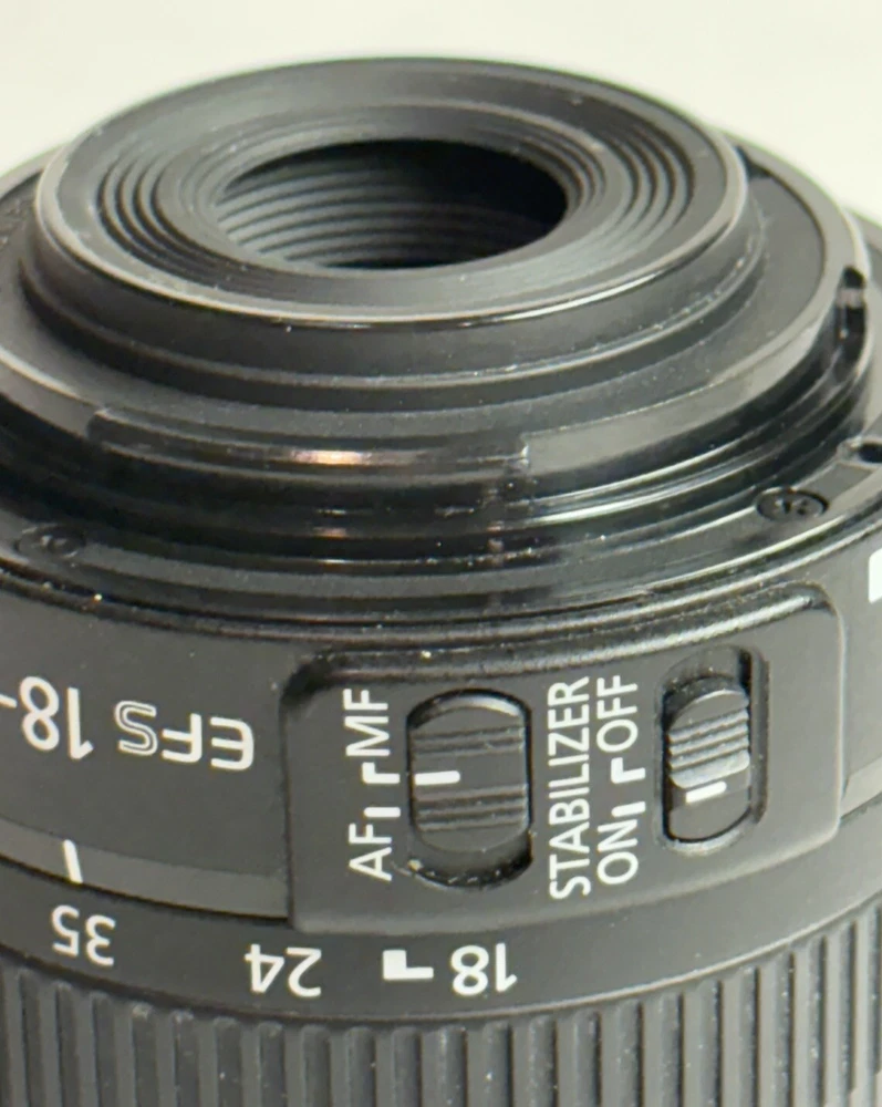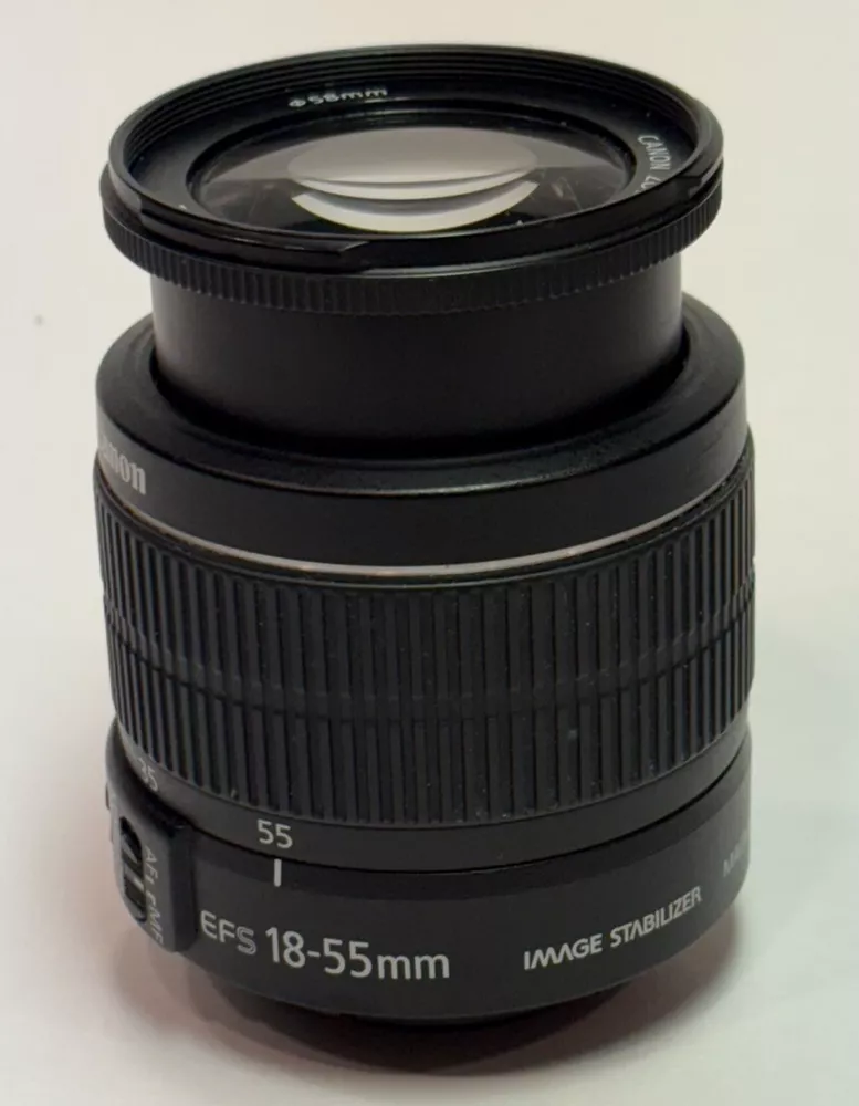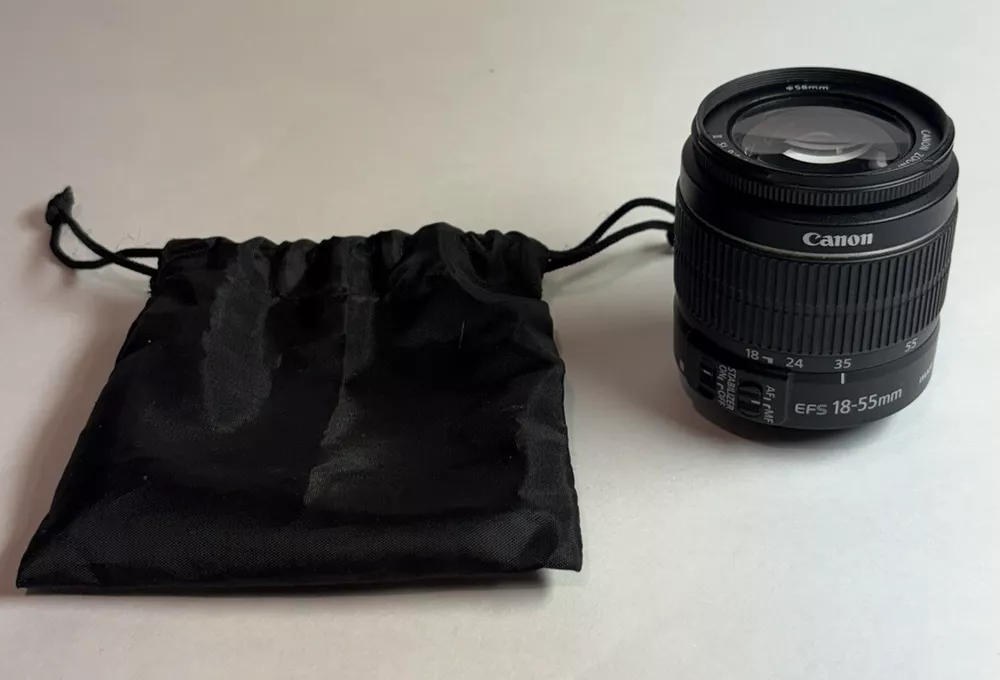 Canon Zoom Lens EF-S 18-55mm 1:3.5-5.6 IS Image Stabilizer AF/MF No Caps Good condition, just a few light scuffs and on the body and the lens appear to be scratch and dust free. Please see pictures for condition and details. Does not include caps but does include a nylon carrying bag. This Canon Zoom Lens EF-S 18-55 mm 1:3.5-5.6 IS II is the perfect addition to your photography gear. With its Image Stabilizer and Macro capabilities, you'll be able to capture stunning images from a distance of .25m/.8ft. Its compatible brand is for Canon and the mount is Canon IS. The lens has a focal length of 18-55mm, with a maximum aperture of f/3.5-5.6. It is made of durable black plastic and has a unit quantity of one. The lens is compatible with 58mm filters and has auto and manual focus options. This unit was manufactured in the 2010s in Taiwan and is a part of the Canon EF-S series.