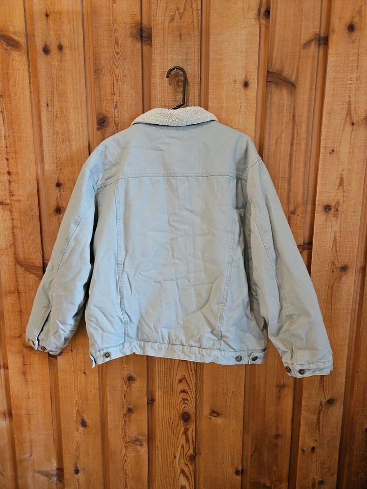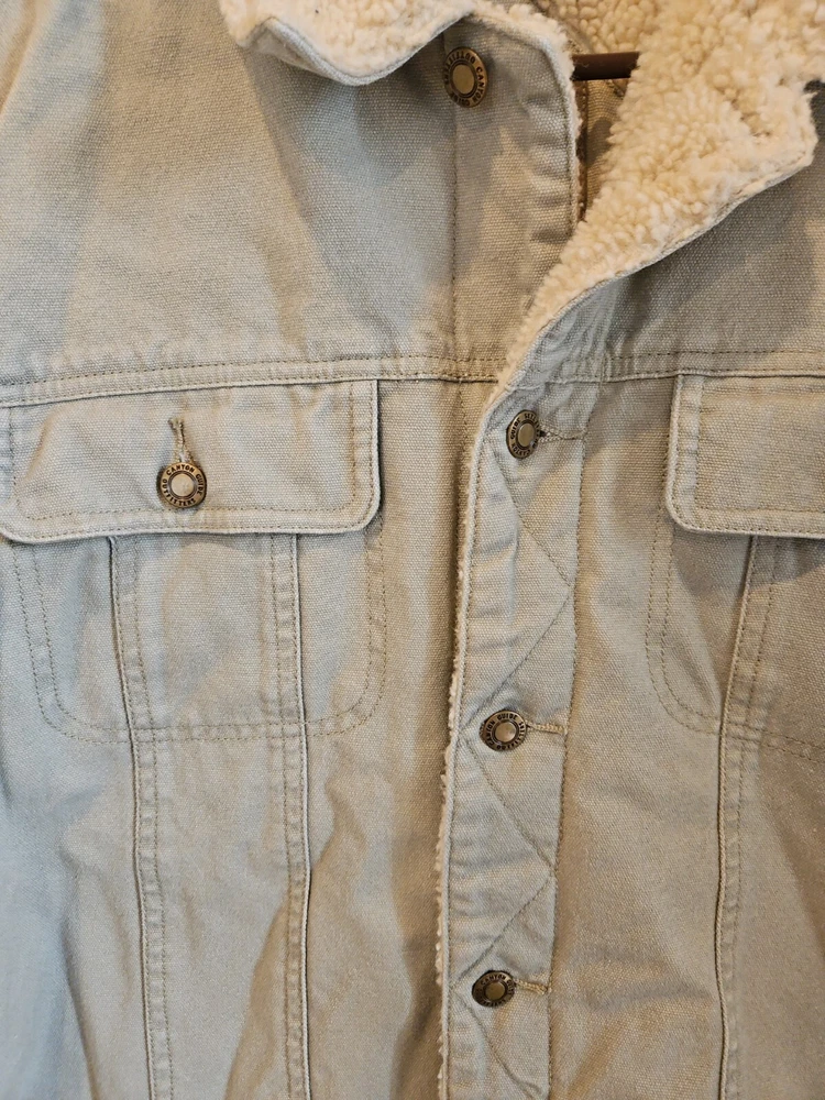 Canyon Guide Men's Sherpa Lined Canvas Trucker Jacket Button Up Size XL Tan Length: 27 in. Sleeve: 24 in. Clean/laundered to eBay standards.