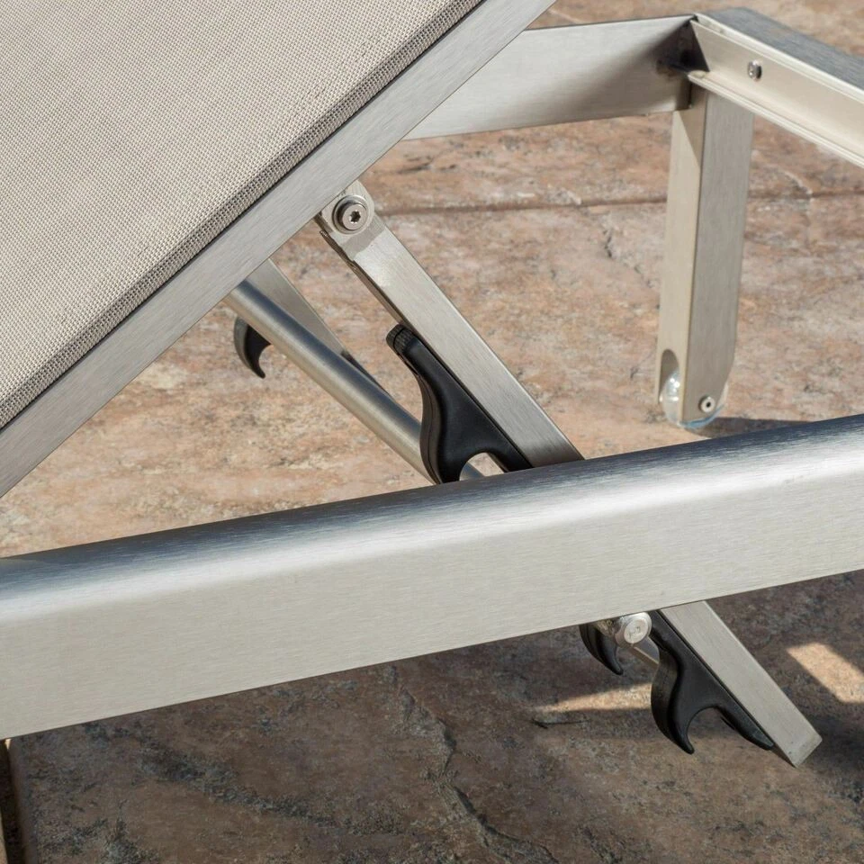 Specifications Place of Origin #originPlace# Main Color Grey Main Material Nylon Mesh Dangerous Goods #dangerFlag# Dimensions & Weights Assembled Length (in.) 77.50 Assembled Width (in.) 25.25 Assembled Height (in.) 11.80 Weight (lbs) 20.72 Product Features Add fresh new enjoyment to your outdoor space or upgrade your patio with a new look with our mesh chaise lounge that allows you to relax under the sun with ease. ALUMINUM FRAME: This chaise lounge is built with aluminum, creating a lightweight and stable frame. This material is rust resistant which will further extend the life of your product. ADJUSTABLE: Our chaise lounge offers adjustable seating to ensure maximum comfort. This accommodates five different positions, including a fully reclined option. WITH WHEELS: The back legs of this chaise lounge have wheels attached for easy mobility. This allows you to conveniently transport this piece wherever you need. ASSEMBLY REQUIRED: Some assembly is required for this chaise lounge. All of the instructions and tools needed for assembly are included. Includes: One (1) Lounge Made of synthetic mesh with aluminum frame Dimensions:77.50'D x 25.25'W x 13'H Description