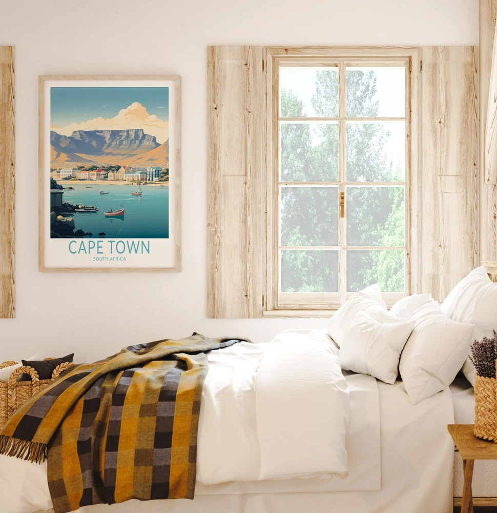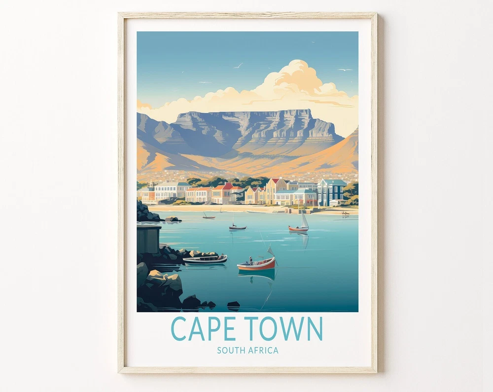Cape Town Travel Poster South Africa Cape Town Wall Art Custom Travel Poster Personalized Gift Birthday Present Material: Premium luster photo paper Print type: Inkjet printing One side printed + The finish provides the highest possible resolution and color saturation + Lasts up to 200 years in color and 400 years in black-and-white + Printed on high-quality resin-coated photo base paper medium + Posters can be hung with double-sided tape, tacks, or framed + Hand washing with a gentle cry cloth is recommended for extended durability I will hand select the best choice of paper for your chosen design to ensure top quality results for a beautiful, bright and luxurious print. All prints are sealed in cellophane slips for protection during transportation, and are shipped in a protective cardboard envelope.