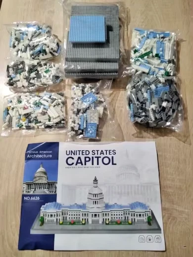 United States Capitol Building Blocks Set - 3D Puzzle - Construction Bricks Set - New Sealed without Box - 3100 Pcs. Feature ● Blocks model name: Building Blocks - Puzzle ● Fit for: 8 years and up. ● Blocks pcs: 3100 pcs ● Product Material: Eco-friendly ABS plastic, harmless to children's health. ● Condition: 100% Brand New. ● Packing content: 1 Building Blocks Set, and Detailed Paper Instructions Manual (The items packed in a bag, not in its box). Note: This is a high-quality, Chinese-origin, MOC Lego-compatible product. It is not an official Lego set or endorsed by Lego. Warning: ● Contains small parts, not intended children under 3 years. Plastic Block Shape Self-Locking Bricks Plastic Type ABS Warning Can not eat Material plastic Recommend Age +8y Origin Mainland China