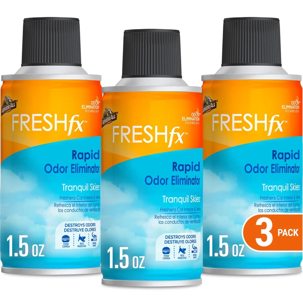 Car Air Freshener and Purifier, Car Odor Eliminator, 1.5 Ounce (Pack of 3) CAR AIR FRESHENER: Three 1.5 oz bottles of Freshfx Rapid Odor Eliminator in Tranquil Skies scent RAPID RESULTS: Odor Elimination Technology quickly removes odors instead of covering them up DESTROYS ODORS: Advanced odor neutralizer destroys stubborn odors from pets, food, smoke and more FAR-REACHING FRESHNESS: Powerful Odor Elimination technology freshens your entire car interior, including the vents REFRESHING FRAGRANCE: This crisp Tranquil Skies scent is like a fresh breeze rushing through your car, blending notes of apple, freesia and lush greens VALUE: This smoke odor eliminator 3-pack delivers the freshness you count on at a great value RELIABLE RESULTS: From —the most trusted name in car care products Freshfx Rapid Odor Eliminator in Tranquil Skies scent destroys stubborn odors for fast, effective results. This advanced car freshener uses Odor Elimination Technology to remove food, pet and smoke odors in your car or truck. Plus, this powerful odor neutralizer freshens areas in your car interior that other car fragrance products can't always reach—including the vents. All that's left behind is a refreshing Tranquil Skies scent, a burst of crisp fragrance with notes of apple, freesia and lush greens. With car care products from , you get effective results for your car. Shipping We offer FREE shipping on all orders! We ship within Three business days of payment, usually sooner. We use a selection of shipping services such as UPS, FedEx, USPS etc. We only ship to the lower 48 states, no APO/FPO addresses or PO Boxes allowed. Local pickups and combined shipping options are not provided at this time. Return You can return a product for up to 30 days from the date you purchased it. Any product you return must be in the same condition you received it and in the original packaging. Please keep the receipt. Payment We accept payment by any of the following methods: PayPal Please pay as soon as possible after winning an auction, as that will allow us to post your item to you sooner! Feedback Customer satisfaction is very important to us. If you have any problem with your order, please contact us and we will do our best to make you satisfied. Contact Us If you have any queries, please contact us via ebay. We usually respond within 24 hours on weekdays. Please visit our eBay store to check out other items for sale! Thank you for shopping at our store.