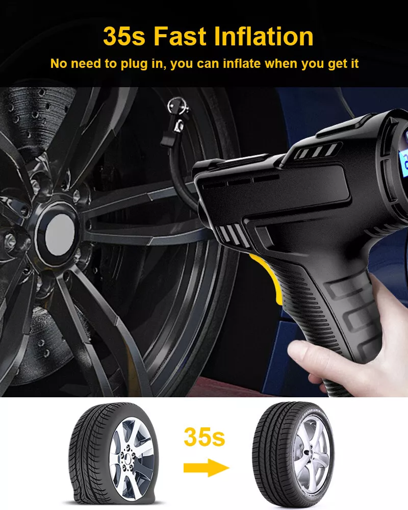 Charging Cable Length: 3m/9.8ft Horse Power: 13 hp Type: Piston Compressor Portability: Portable gtin13: Does not apply Voltage: 12 V Inflation Time: 10Mins Tank Capacity: 43 gal Continuous Work Time: 22Mins Flow Rate: Less than 100 L/min Item Length: 7.7 in UPC: Does not apply Power Source: Corded Electric Tank Material: Cast Iron Lubrication Type: Oil-Free MPN: Does not apply Manufacturer Warranty: 1 Year Item Weight: 0.9 lbs Inflatable Tube: 14.4in Item Width: 5 in Color: Black Item Height: 2 in Brand: Unbranded Maximum Working Pressure: 150 Psi Power: 120W Inflatable Flow: 20L/min