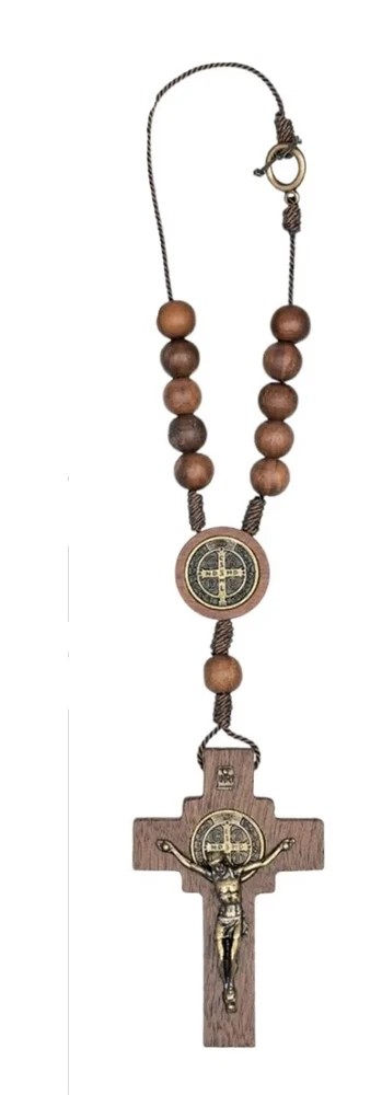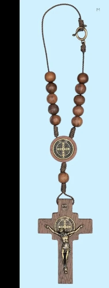 Made in Brazil Catholic Five Decade Rosary For Car Rear View Mirror Handmade from solid Imbuia wood . The thick crucifix features St Benedict medal (silver tone) on both sides. This rosary comes apart at the top with a bar fixture. The 1" round center is double sided silver tone St Benedict medal. The crucifix is solid wood 1.75" x 2.75" Shipping We take great care packaging every item to ensure safe delivery of your purchase. We ship within 3 business days • Orders are shipped on business days only. Business days are Monday-Friday, excluding federal holidays within the United States. . You will receive tracking information within a day of shipment. . Please make sure to provide the correct shipping address when placing your order, orders will be shipped out to the shipping address provided. • Transit time varies and depends on the carrier, we cannot be held responsible for delays caused by the carrier. FEEDBACK Our goal is to make every customer 100% satisfied with their order. When you receive your order take a minute to leave us positive feedback . Please do not simply leave a neutral/negative feedback if you had an issue with an item. If you are not satisfied, please let us know before leaving feedback. Please send us a message and let us know how we can earn your satisfaction! • Please know that your positive feedback and 5 star rating is extremely important to us. The five-star rating system that is instituted is also important to the continued success of our Small family business. • Remember Always To Count Your Blessings. Have a good and Blessed Day Car Auto Rosary Beads St Benedict brown Wood Catholic Cord Rear View Mirror Cruz.