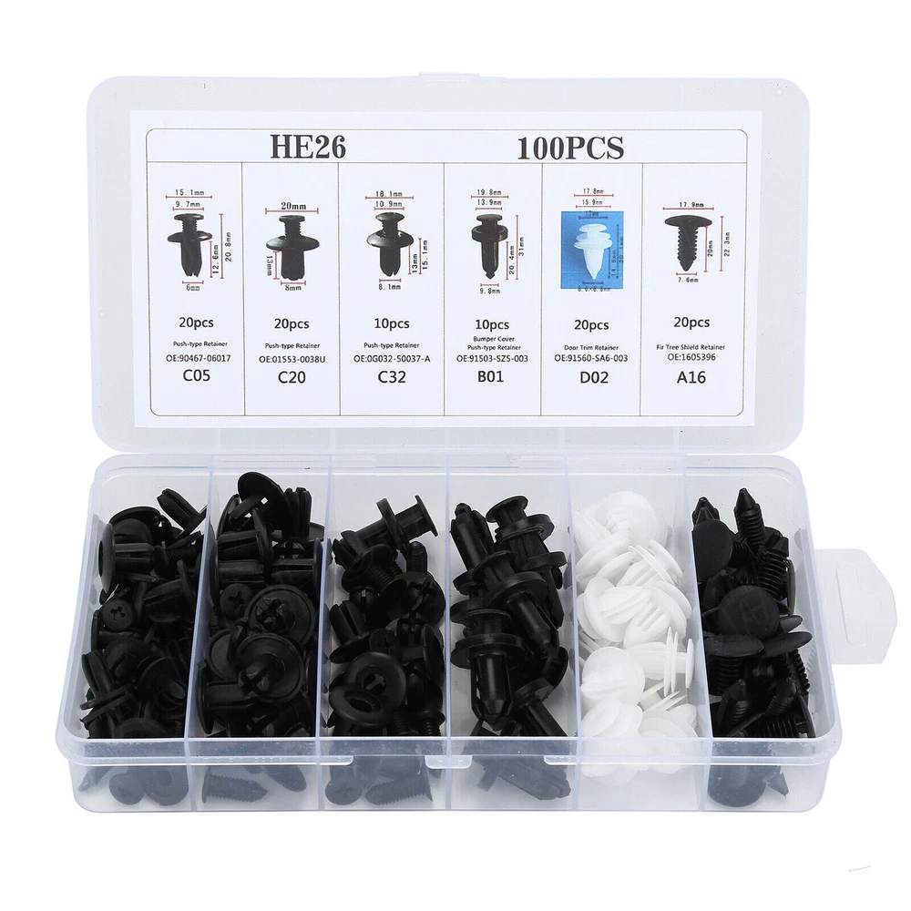 100Pcs Clip Trim Car Push Pin Rivet Bumper Door Panel Retainer Fastener Kit Description: Features: Various fasteners to meet the needs of different parts of the car. Used widely for car fender, bumper, door or other car surface. High quality plastic material, durable and long service life. Note: All vehicles have a range of different clips used on them. Different models have different sizes and there are no universal clips. Please check as much as possible before buying. Package including 100pcs Clips + 1 Plastic Box Clip of C05 Screw Type Clip Retainer Rivet Condition: Brand New Material: Black Nylon Size Approx: Head Diameter: 15mm Stem Length: 12mm Fits Into 6mm Hole For GM Replace 20426301 For Mazda Replace 9926-50-625 For Toyota Replace 90467-06017 For Toyota Replace 90467-06017-20 For Toyota Replace 90467-06017-41 For Auveco A14260 Clip of C20 Fender Liner Clip Splash Shield Blind Rivet Fits For Mazda Replace FB01-56-964 Fits For Honda Replace 90675-SB3-003 Fits For Nissan Replace 63876-95596 Fits For B16 B18 B18C B20 H22A EK9 EG6 Fits For Accord Civic Prelude CR-V Del Sol CRX Fits For INTEGRA GSR S2000 AP1 MUGEN Fits For TYPE R Si Condition: Brand New Material: Black Nylon Size Approx: Head Diameter: 20.6mm (0.81") Stem Length: 9.5mm (0.37") Fits Into 8mm (0.32") Hole For Auveco A16000 Clip of C32 Push-Type Retainer Black Nylon Head Diameter: 20mm Stem Length: 13mm Fits Into 8mm Hole Fits For Mazda 6 2002-2006 Fits For Mazda 323 1998-2003 Fits For Ford Aspire Fits For Mazda Replace B092-51-833 Fits For Ford Replace MB-455-56143 Fits For Kia Replace MB455-56-143 Fits For Nissan Replace 09409-09302 Fits For Hyundai Replace 86590-28000 For Auveco A17632 Clip of B01 Front & Rear Bumper Retainer Push Type Clip Condition: Brand New Material: Black Nylon Head Diameter: 20mm Stem Length: 18mm Fits Hole Size: 10mm For Honda Replace 91503-SZ5-003 (1996-On) For Acura Replace 91503-SZ5-003 For Auveco A20564 For PAS9282, PAS938 Clip of D02 Interior Trim Board Retainer Clip White Nylon Top Head Diameter: 13mm Middle Head Diameter: 16mm Bottom Head Diameter: 18mm Stem Length: 15mm Stem Diameter: 8.5mm x 8.5mm Overall Length: 20mm Fits For GM Replaces 94858299 Fits For Geo Prizm 1998-On Fits For Toyota Replaces 90467-10161 Fits For Sienna, Solara & Tercel 1990-On Fits For Previa 2007-On, Corolla 2003-On Fits For Lexus LS460, LS460L 1990-On For Auveco A18876 Clip of A16 Radiator Yoke, Fender & Bumper Shield Retainer Christmas Tree Type Clip Black Nylon Head Diameter: 17.8mm Stem Length: 20mm Stem Diameter: 7.6mm For GM Replaces 1595864, 1605396 For Ford Replaces 388577S For Ford Replaces W705589-S300 For Auveco A11146, A15414 Shipping: All items will be checked before packing. All items are new and of high quality. 1. Can you tell me when my order will be shipped? Actually we will ship the item within 1 business day after receiving orders, excluding weekends and public holidays. But USPS need to take longer time to update tracking info and arrange delivery during the challenging time for now. If your order was not shipped more than 3 business days, please contact us with your order number to get quick support. 2. My item has not arrived, what's taking so long? Sometimes items take longer than expected, especially if it's going far or to rural area. Check with your post office to see if your item has been held up. Sometimes USPS will not update a tracking number until it has arrived at its destination. If your item still has not arrived after a few days, let us know so we can double check for you and help solve it asap. Payment: 1. Instant PayPal payment is the preferred method of payment. We also accept payment via PayPal, DebitCard, Visa, MasterCard, Discover. 2. Items will be shipped to your eBay address. Please make sure it is correct. 3. If you want to ship to other address, please change your PayPal shipping address before you make payment. 4. Payment must be received 4 days after auction ended. Returns: 1. Customer satisfaction is our top goal. We believe our items are so outstanding. All products are quality checked. They are new and in good condition when shipped to our customers. We are convinced you will be happy with your Purchase. 2. We offer free return & money back guarantee. If you are not satisfied with your purchase for any reasons, you can return the item for refund or replacement/exchange. All returns must include the original packaging. 3. Please contact us first if you have any problems/questions/concerns. We will be happy to resolve any issues you may have in a cordial and friendly manner. Any items damaged because of incorrect installation will not be refunded. Please contact us for return or troubleshooting help prior to returning any products. 4. We appreciate your Postive Feedback, and will do the same in return. DO NOT leave negative feedback without first communication with us. Please allow max 2 business days for us to response. About Feedback: 1. When you satisfied with our product and services please leave us positive feedback. 2. If you have ANY questions with shipping, product or service, please Contact Us first before leaving feedback/write a review or filing a return case. We will solve the problem! If you have ANY questions with shipping, product or service, please Contact Us first before leaving feedback/write a review or filing a return case. We will solve the problem! We always put our customers first and your satisfaction is guaranteed. We offer free returns with any orders within 30 days from the date of delivery. No restocking fees, no administrative fees, no return shipping fee, and no hassle! We will email you when a prepaid return label is ready to download from your ebay account. You just have to print it out and drop the package off at a USPS facility. When we get it back, you will be notified and credited for the full price of the items/products that are returned. Since the shipping fees go directly to the delivery service, we are not able to refund 