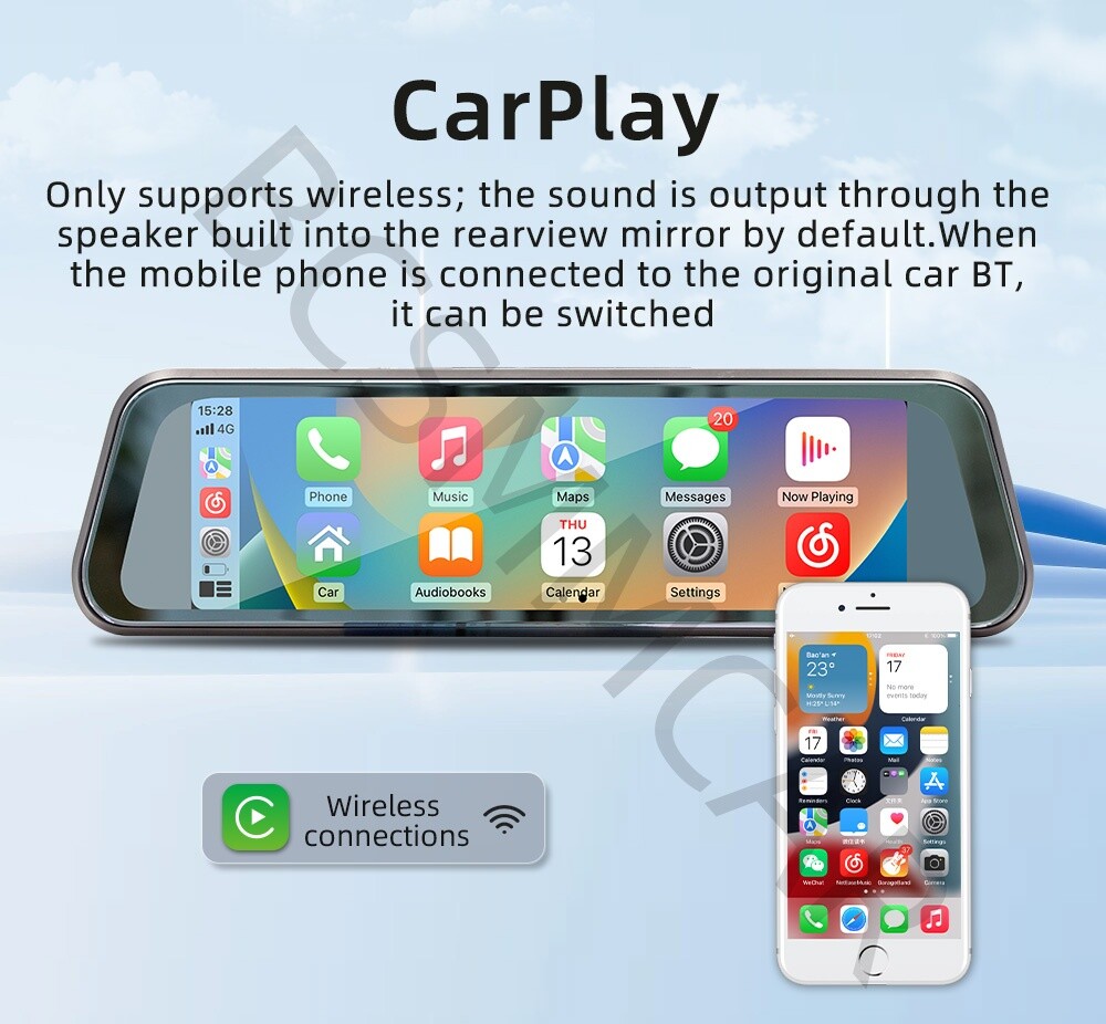 Car DVR Rearview Mirror with CarPlay Bluetooth FM AUX Player Recorder