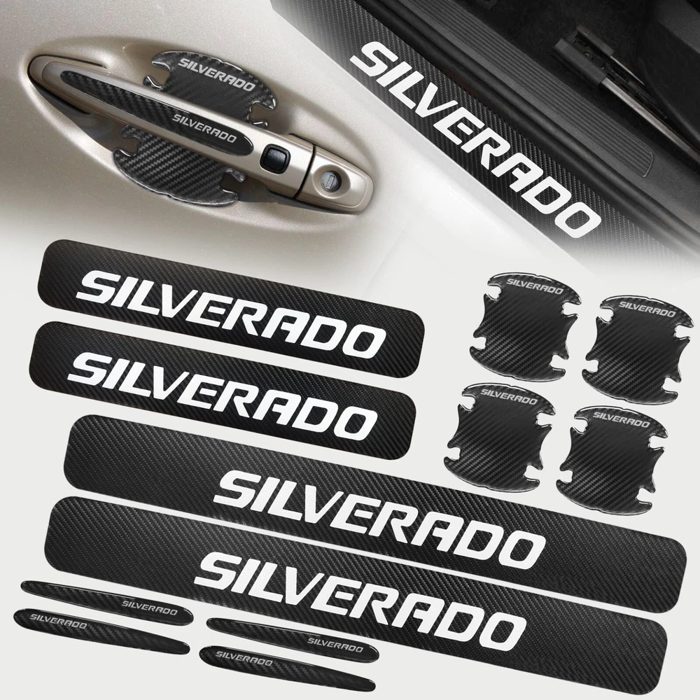 Door Sill Scuff Cover Stickers Made of high quality Carbon Fiber Textured Faux Leather, Anti Scratch and abrasion resistant, durable and effective in protecting car door sills. Easy Installation: P lease wipe the car door sill clean before installing, to ensure that there is no oil and dust first, then remove the protective paper on the back of the sticker, gently stick on the door sill above to ensure that no air bubbles are generated. Simple Maintenance: When the car door sill protector reflective sticker is stained with dirt or oil, simply wipe it with a damp rag and it will look like new with a gentle wipe. Door Cup Stickers & Door Handle Stickers Material: Carbon Fiber Texture Vinyl Stickers + Epoxy Resin Self adhesive , won’t fall of easily, will keep your door cups looking like new, without changing the appearance in any weather. No more scratches to the door handle cups Easy to Install: Clean car door handle cup and let it dry, then tear off the protector film from adhesive backing, stick film onto the cup and adjust the perfect position. Package Included : 4PCS Door Sill Scuff Cover Stickers (2 Front + 2 Rear) 4PCS Door Cup Stickers 4PCS Door Handle Stickers