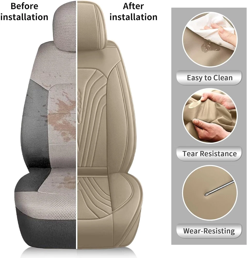 Notice 1.All the pictures have been professionally corrected, but due to the different ambient light and different display device settings, there may be some deviations in the pictures and items you see, please understand! 2.Dear Sir/Madamn, once you received the item, if you're not satisfy with the item or you have any questions please don't hesitate to contact us, thanks for your understanding and cooperations ! Feature Waterproof, Wearproof PU leather, filling elastic sponge, breathable soft texture, anti-static, easy to clean. Head design Matched with headest and Cushion pillow. The back is close designed and whole surrounded, it reserves for airbag outlet,beautiful and safe. Large base in front row, whole surrounded design at side of front seat, slide protect the car seat well. Specification Type: Car Front Seat Covers Color: Beige Material: Faux leather Range of application: 2-sits cars, all seasons Fitment: Fit For Honda Accord 2007-2017 Package included 2 Front Seat Covers 2 Headrest Covers 1 Bag of Accessories for Installation 1 Intruduction Manual of Installation