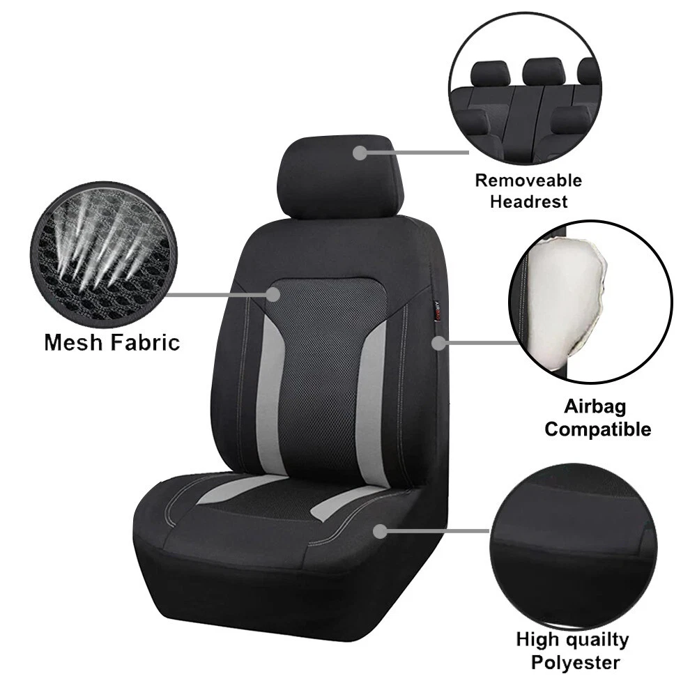 Product Description Universal 2Pcs Car Front Seat Covers Compatible Mesh Fabric Auto Seat Cover Interior Accessories Fit Most Car Add our listing to Watchlist Or Add to Cart , you will get more discount Product Features 1. compatibility 2. Universal dimensions suitable for most cars, sedans, and cruisers 3. Comfortable and breathable, not falling off. 4. The rear of the seat is fully covered to protect your seat. 5. Seasonal supply, comfortable in summer and winter Headrest Covers Size: 28*26cm Front Seat Covers Size: 114*57cm Color: Black/gray Material: Fabric splicing mesh Placement on Vehicle: Front Applicable Season: Autumn Winter Spring Summer Reason for buying * Sporty Breathable Mesh And Fabric Car Seat Covers,Compatible * Universal Fit For Cars,Sedans,Trucks,Vans BEAUTIFUL DESIGN IN RICH COLORS * This type of car seat covers is one of most popular in the seat covers line. High quality breathable cloth made. Durable use. Feel Very comfortable when driving.Full protection for your car seat covers * THREE LINE ZIPEERS FOR EASY TO INSTALL AND CLEAN * We use the zipper insider to make it easier to install and perfectly fit you car. Can be used in Suvs, sedans, trucks, cars. Recommended for every car owners. Package Including:(2Pcs Front Seat Cover Set) - 2pcs front seat covers - 2pcs headrest covers Payment Returns Contact Us Shipping We accept payment by PayPal only ! Payment should be completed within 5 days after buyer places the order,or else an unpaid case will be opened in order to cancel the transaction. If you can not pay in time, please contact us. e-check from PayPal will only be processed once the payment clears. All of the items will be shipped to buyer's EBAY address,please confirm your address on Ebay before you buy.Your order will be usually shipped out the same or next business days once the payment is made and cleared. 30-day Warranty with Exchange for defective, malfunctioned, incorrect or parts-missing items. Please notify us and return the item with all parts and accessories packed and marked "FOR EXCHANGE" within 14 days of receipt. If defective, malfunctioned or parts-missing items are no longer available, a refund may be issued. All returning postage costs will be the responsibility of the buyers under all circumstances. If you encounter any problems about anything, please feel free to contact us and we will do our best to assist you solve the issue. If you are not satisfied in anyway, please feel free to let us know and give us a second chance to correct it before you decide to leave any neutral or negative feedback. Please contact us through eBay link if you have any questions. We will reply you within 24- 48 hours. Please check you spam mail if no response for 48 hours. All items will be checked before packing. All items are new and of high quality. Item will be shipped within 1 business days upon receipt of payment, excluding weekends and public holidays. If to USA,we will ship your order by USPS,it will take about 8-12 working days to you,and you can track it on line. If to other country,we will ship your order by China Post or Singapore Registered Air Mail,it will take about 14-21 working days to you,you aslo can track it on line. Delivery time is about 14-28 business days and it may take up to 8 weeks . Payment We accept payment by PayPal only ! Payment should be completed within 7 days after buyer places the order,or else an unpaid case will be opened in order to cancel the transaction. If you can not pay in time, please contact us. eCHECK from PayPal will only be processed once the payment clears. All of the items will be shipped to buyer's EBAY address,please confirm your address on Ebay before you buy.Your order will be usually shipped out the same or next business days once the payment is made and cleared. Returns 30-day Warranty with Exchange for defective, malfunctioned, incorrect or parts-missing items. Please notify us and return the item with all parts and accessories packed and marked "FOR EXCHANGE" within 14 days of receipt. If defective, malfunctioned or parts-missing items are no longer available, a refund may be issued. All returning postage costs will be the responsibility of the buyers under all circumstances. Contact Us If you encounter any problems about anything, please feel free to contact us and we will do our best to assist you solve the issue. If you are not satisfied in anyway, please feel free to let us know and give us a second chance to correct it before you decide to leave any neutral or negative feedback. Please contact us through eBay link if you have any questions. We will reply you within 24- 48 hours. Please check you spam mail if no response for 48 hours. Shipping All items will be checked before packing. All items are new and of high quality. Item will be shipped within 1 business days upon receipt of payment, excluding weekends and public holidays. If to USA,we will ship your order by USPS,it will take about 7-10 working days to you,and you can track it on line. If to other country,we will ship your order by China Post or Singapore Registered Air Mail,it will take about 14-21 working days to you,you aslo can track it on line. Delivery time is about 14-28 business days and it may take up to 8 weeks . Welcome to our Store ~