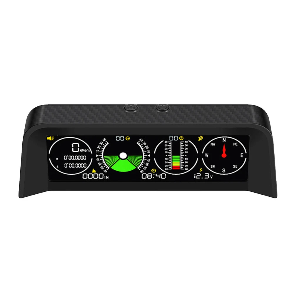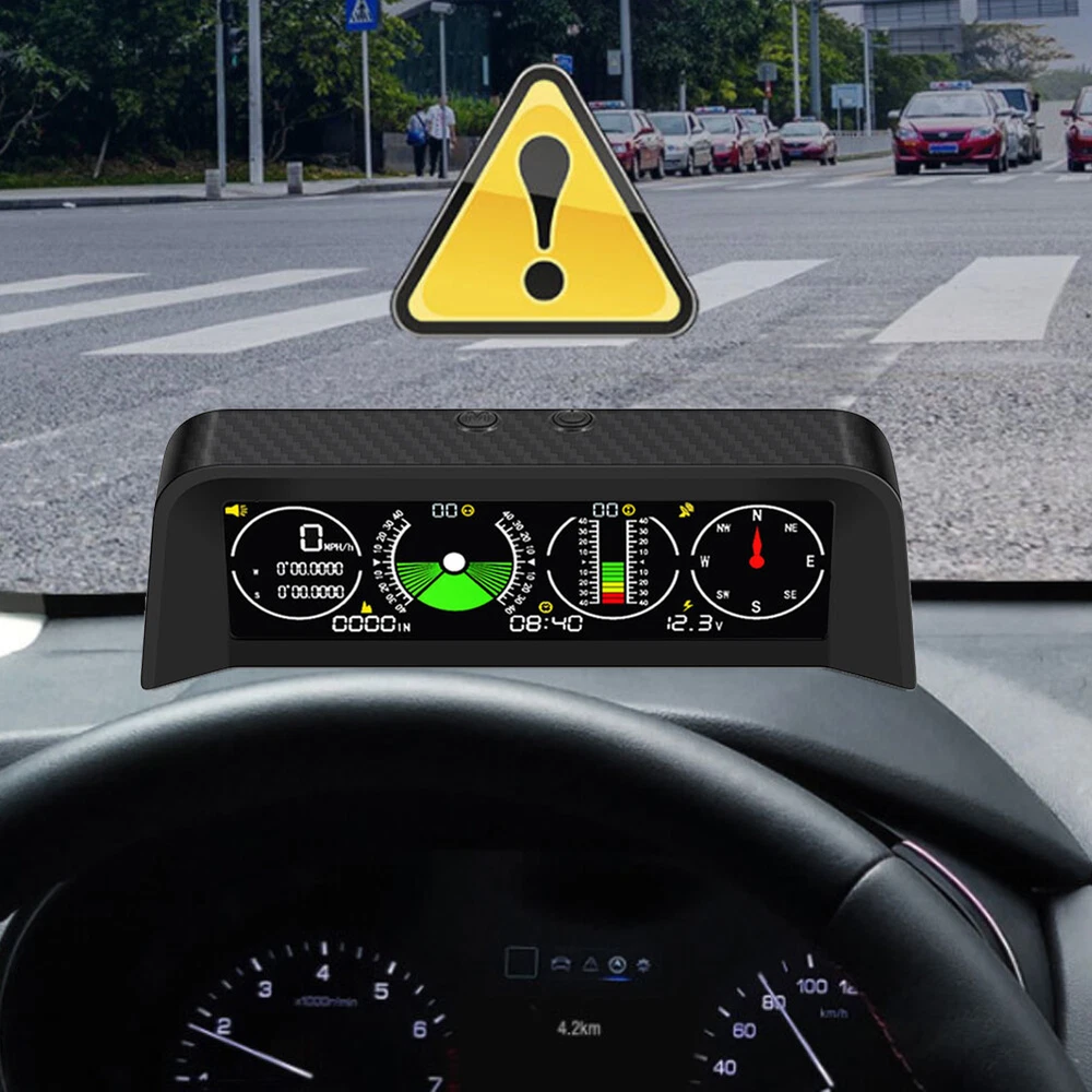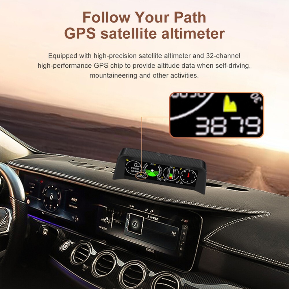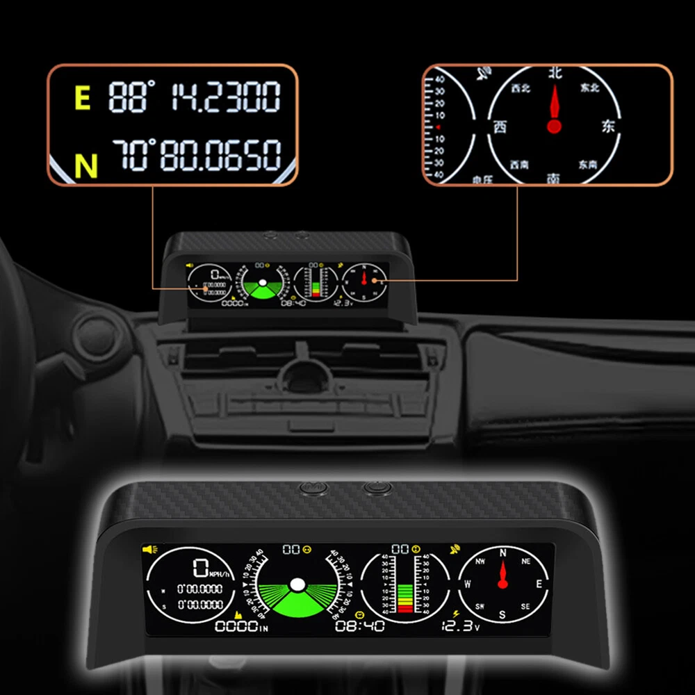 Features: *1. Multifunction - Intelligent GPS multi-function HUD speedometer supports high-precision monitoring of vehicle speed, vehicle pitch angle, vehicle roll angle, compass, time, and vehicle battery voltage status, ensuring your driving safety. *2. 3-in-1 Alarm System - Accurately displays the pitch and roll angle changes of the vehicle and sends a clear notification. When one or both angles exceed 40 degrees, negative or positive, the alarm will sound. Also cover the Overspeed and Fatigue Driving reminders. *3. High-definition LCD Display - Adopt high-resolution color LCD display with a built-in light sensor that adjusts the brightness of the screen day and night. Free rotation, more sensitive. After turning on the power, there will be backlight inside, which will help you see the screen at night or in dark conditions. *4. GPS Module - Equipped with a high-precision satellite GPS signal module. Automatically monitor vehicle driving conditions. Widely applicable to Asian cars, American cars, and European cars. *5. It can be connected to the vehicle OBD interface through a data line to read the real-time data output of the ECU, and supports the NINE OBD protocol. Size: 170x70x60mm Function: *1. GPS satellite speedometer *2. Altitude display *3. Longitude and latitude display *4. Compass *5. Satellite time display *6. Overspeed alarm(>120km/h) *7. Fatigue driving alarm (driving continuously for 4 hours) *8. Vehicle roll angle *9. Vehicle pitch angle *10. Automatical screen brightness adjustment *11. Color HD LCD display Package Includes: 1 x HUD 1 x Cigarette Lighter Power Cord 1 x ACC Power Cord 1 x Instruction 1 x Anti-slip Pad