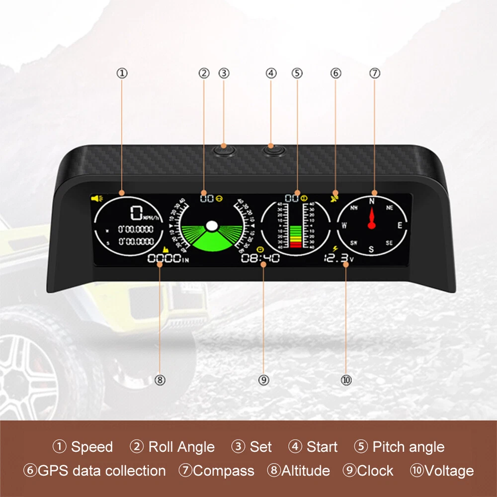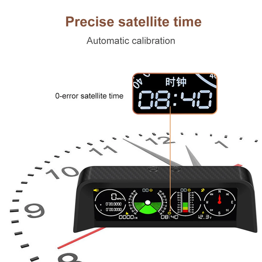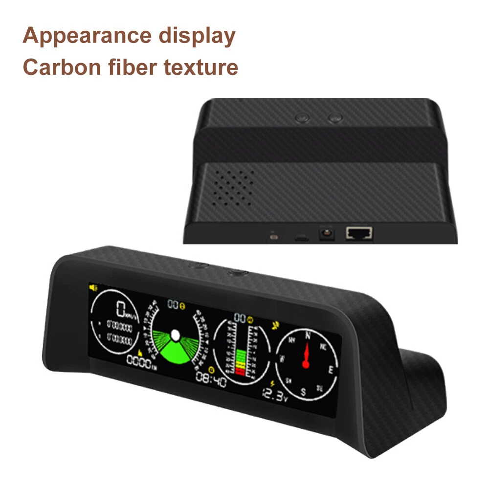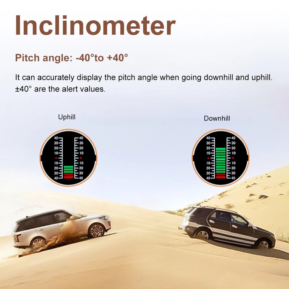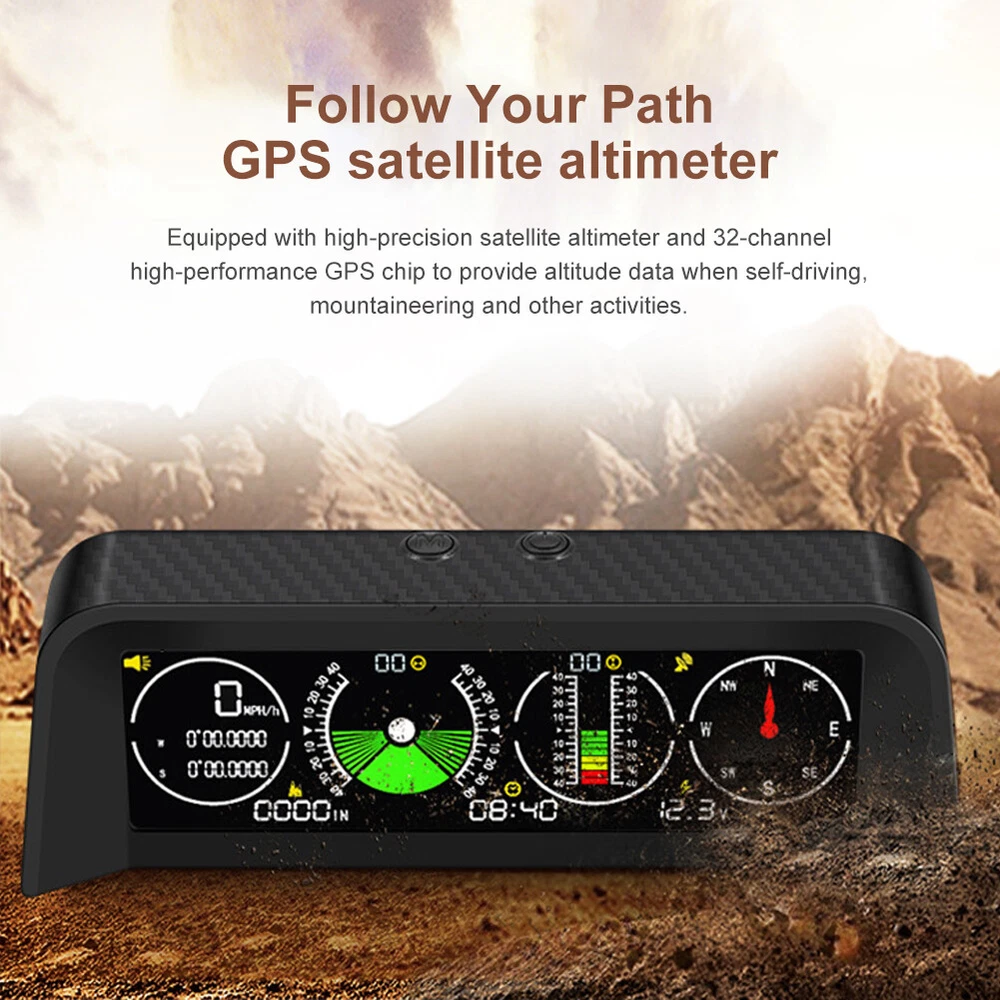 Features: *1. Multifunction - Intelligent GPS multi-function HUD speedometer supports high-precision monitoring of vehicle speed, vehicle pitch angle, vehicle roll angle, compass, time, and vehicle battery voltage status, ensuring your driving safety. *2. 3-in-1 Alarm System - Accurately displays the pitch and roll angle changes of the vehicle and sends a clear notification. When one or both angles exceed 40 degrees, negative or positive, the alarm will sound. Also cover the Overspeed and Fatigue Driving reminders. *3. High-definition LCD Display - Adopt high-resolution color LCD display with a built-in light sensor that adjusts the brightness of the screen day and night. Free rotation, more sensitive. After turning on the power, there will be backlight inside, which will help you see the screen at night or in dark conditions. *4. GPS Module - Equipped with a high-precision satellite GPS signal module. Automatically monitor vehicle driving conditions. Widely applicable to Asian cars, American cars, and European cars. *5. It can be connected to the vehicle OBD interface through a data line to read the real-time data output of the ECU, and supports the NINE OBD protocol. Size: 170x70x60mm Function: *1. GPS satellite speedometer *2. Altitude display *3. Longitude and latitude display *4. Compass *5. Satellite time display *6. Overspeed alarm(>120km/h) *7. Fatigue driving alarm (driving continuously for 4 hours) *8. Vehicle roll angle *9. Vehicle pitch angle *10. Automatical screen brightness adjustment *11. Color HD LCD display Package Includes: 1 x HUD 1 x Cigarette Lighter Power Cord 1 x ACC Power Cord 1 x Instruction 1 x Anti-slip Pad