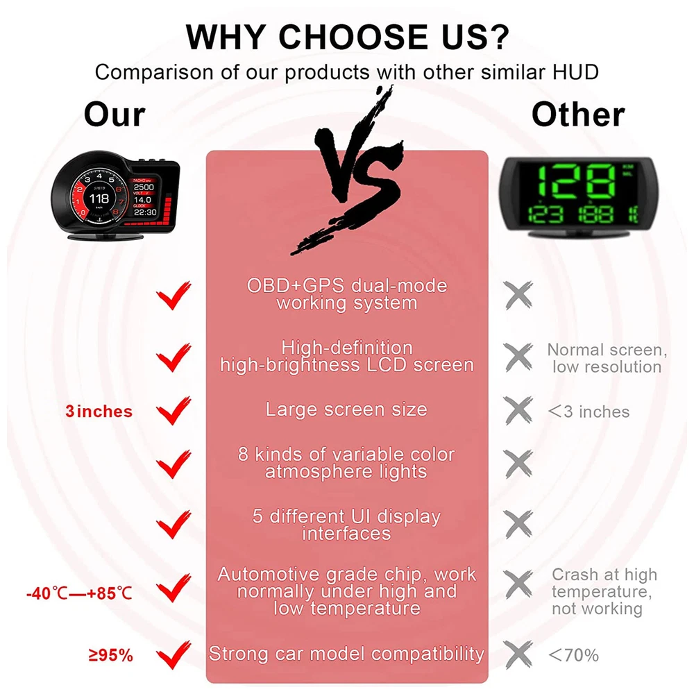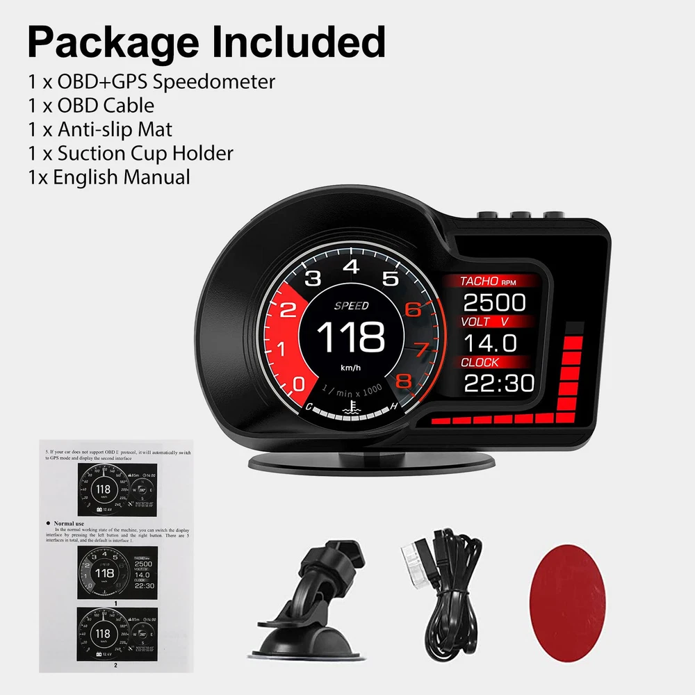 OBD2+GPS Car HUD Gauge Head Up Digital Display Speedometer Turbo RPM Temp Alarm Product Description Product Feature ✨ Safe Driving: The heads-up display can read and display car data at a glance, so that you can only focus on driving, never lower your head when driving, and escort your safe driving. ✨ Multiple Display Functions: Automatically read and display vehicle data such as car speed, time, RPM, voltage, water temperature, travel time, travel distance, satellite number, altitude, travel direction, latitude and longitude, oil temperature, acceleration test, brake test, turbo pressure, engine load, and other car data. ✨ Multiple Alarm Functions: This OBD speedometer has 6 alarm functions, including speed, water temperature, low voltage, high voltage, fatigue driving, vehicle DTC and other alarms. When the engine warning light in your car gauge comes on, it indicates that your car has some kind of fault, but with this car head-up display, you can clear the fault codes yourself without having to go to a repair store and pay for the repair. ✨ New Experience: High-definition color LCD gauge, OBD+GPS dual working mode, read more data, clear car fault codes, 8 kinds of variable color atmosphere lights, 5 kinds of different UI display interface, free switching, give you a new driving experience. ✨ Simple Installation: 2 types of installation, with an adjustable bracket, mounted on the dashboard or attached to the windshield, easy to operate, and non-destructive installation. ✨ Strong Compatibility: Dual System, OBD2 only be available for vehicles produced after 2008. GPS mode is Perfect Suitable for All Vehicles. (If your car is not compatible with OBD mode, please use GPS mode.) OBDll mode is not compatible with a hybrid electric vehicle, diesel car, pickup truck, RV, or computer-modified car. Product Specification Type Car Head-Up Display Material ABS+PC Color Black Display Type 3-inch LCD Screen Two Installation Methods Stand on the dashboard/upside down on the windshield Applicable Models Universal Dual System OBD2 + GPS, If your car's OBD2 Protocol is incompatible, then you can choose GPS Working System, GPS mode can work with all cars Package Included 🎁 1 x OBD+GPS Speedometer 🎁 1 x OBD Cable 🎁 1 x Anti-slip Mat 🎁 1 x Suction Cup Holder 🎁 1x English Manual Location Descriptions To improve your buying experience and ensure fast delivery, Your order will be shipped from the warehouse located in either new jersey or california that is closest to your address. If you have any questions, Please contact us. Thank you for your support ! Payment Delivery details Terms of salas About us Contact us Payment We accept major credit card payments via Paypal. Payment must be received within 7 days of auction closing date. If you do not contact us or respond to our email within 7 days of auction closing date, we do not guarantee the item availability. We reserve the right to cancel any unwanted bids. Delivery details Flat rate shipping charge will be applied to the 48 continental USA States. Extra shipping fee will be charged to ship item(s) to HI, AK, PR, GU, VI, APO, FPO . Item(s) will be shipped via UPS Ground, UPS or USPS within 3 Business days after payment is received. A Tracking Number will be updated as soon as item(s) is shipped. Item(s) will be shipped to your Paypal confirmed address. International buyers please note, we are not responsible for any custom duties, taxes and brokerage fees. For some oversize packages, we may not be able to ship via USPS. Terms of salas All of our items are professionally made and guaranteed to fit. A brief installation manual and hardware included. A professional installation is always recommended. Please send a message over eBay if you have any questions. We accept returns within 60 days after you received the item(s). All returned items must be new and in original package. The buyer will pay return shipping fees. No refund will be made for damaged parts. Shipping and handling fees and insurance fee are not refundable. About us We are specialize in research,development and production of high-quality aftermarket car and truck accessories.We are especially professional on roof cargo management,Our mission is to help carry your load by providing the roof racks that makes it easy to get what you need to your destination. Contact us Your satisfaction is our top priority. We stand behind all products that we sell. If you have a problem with any of our listings, please allow us to work it out. Our business times are Monday-Friday 9:00- 5:00 Pacific Time. Office closes on weekends and holidays. We are striving to earn a 5- star rating with every purchase. Please take a moment to leave us a positive feedback when you receive your order. If you are not satisfied, please let us know before you leaving feedback. Please always include your purchase eBay item number in the mail whenever you have any questions. Copyright © 2023 Dianxiaomi