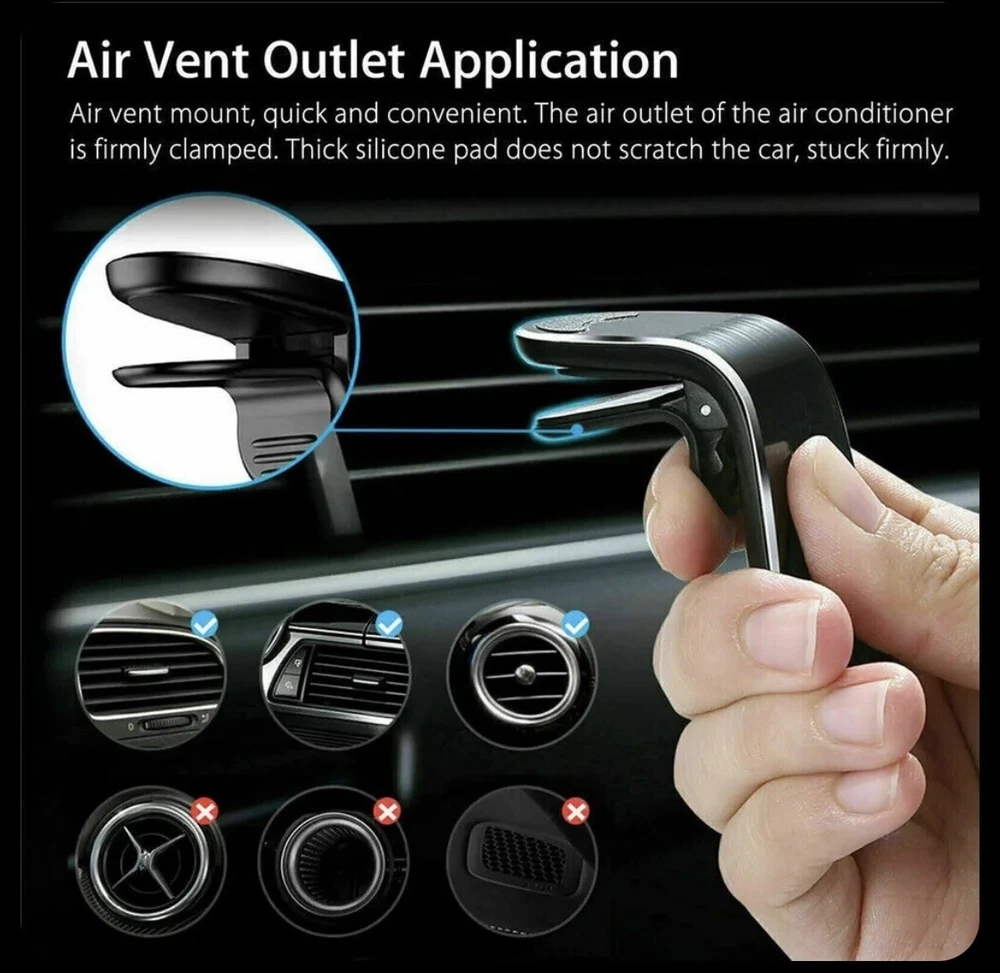This car magnetic air vent mount holder is perfect for holding your mobile cell phone while you're driving. It is made of high-quality metal and has a metallic finish that will add a touch of sophistication to your car's interior. The mount is designed to be compatible with universal phone brands and models, so you don't have to worry about compatibility issues. The holder has a fastening clip that attaches to your car's air vent, and a magnet that securely holds your phone in place. It also has one port for easy wireless connectivity. This phone holder is perfect for anyone who values convenience and safety while driving.