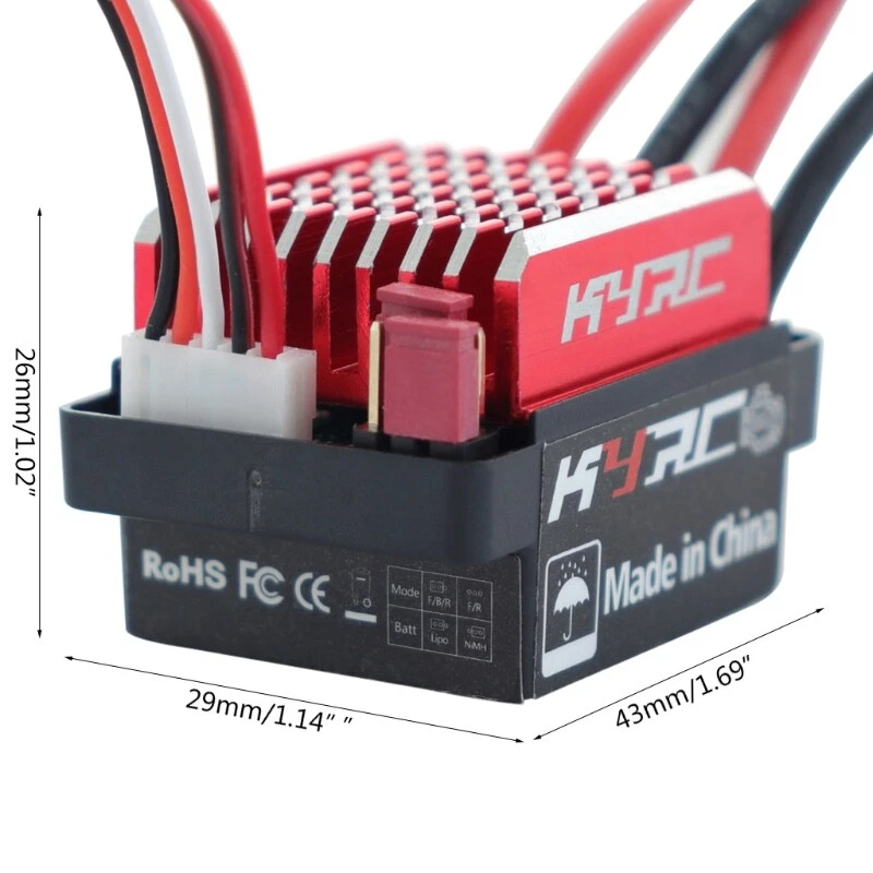 and high Features: Built-in heat sink, good heat dissipation efficiency, can quickly reduce the motor temperature. Running forward brake and reverse brake / forward drag brake and drag brake. Automatic throttle stroke adjustment, automatic throttle neutral adjustment, easy to use. Jumper setting applied for type, which is simple and clear. It has multiple for functions such as lithium low for cell quantity automatic detection, high temperature for and throttle loss for Specifications: Model number: Brush-X60 Forward: 60A/360A Reverse: 30A/180A 2-3S Lipo/5-9 Cells NiMH Application: for 1/10 Car, Short Course Truck, Crawler and for Motor Reference: 2S Lipo/6 cells NiMH: motor:> 12T or less than 30000@7.2V 3S Lipo/9 cells NiMH: motor: >18T or less than 20000@7.2V BEC output: 2A/6V (linear regulator Running Forward and Reverse/Crawler Size: app.43x29x26mm/1.69x1.14x1.02in Color: Red + Black Quantity: 1pc Note: No retail package. Please allow 0-1cm error due to manual measurement. pls make sure you do not mind before you bid. Due to the difference between different monitors, the picture may not reflect the actual color of the item. Thank you! Package includes: 1 x Brushed (other accessories in the picture is not included.)