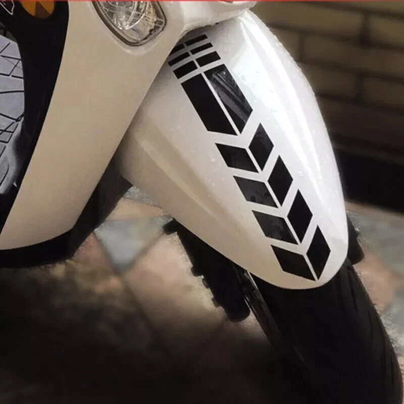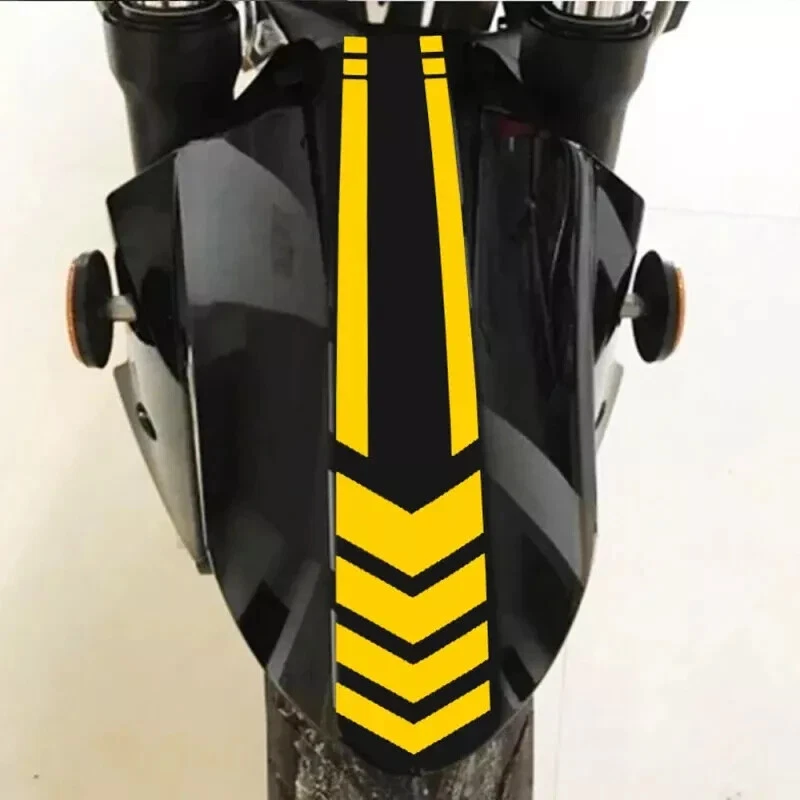 Product description Motorcycle Reflective Stickers Wheel Fender Waterproof Safety Warning Arrow Please be aware Black is compensating to other reflective color. Black is made of reflective materials, but it not showing much reflection. 100% Brand New and High Quality Long lasting, reflective decal sticker Resistant to UV, water, dirt, grease, salt, mild acid and oil. Very easily cleansed with water. Fashionable decoration, unique and attractive. Specification: Stylish motorcycle fender sticker, reflective and waterproof. Item Name: Motorcycle Sticker Material: PET Features: Reflective, Waterproof, Easy to Install, Durable, Motorcycle Decor Size: 34x5.5cm Color : Black,Blue,Green,Red,Yellow,White Mounting Position: Mud Guard Package Included: 1pc Motorcycle aluminum alloy Sticker Read Before Apply: Thoroughly clean the area to be applied, make sure it's without dust, Wax, or water, etc. Firmly apply the decal to the area. Special note: When Applying to the exhaust pipe, Firstly, bend the aluminum Decal to the exhaust pipe curvature shape before applying it, otherwise the decal will not hold firmly to the pipes, will lose stickiness over time. Because the aluminum labels are mass-produced by machines, it is inevitable that there are some small defects and small chromatic aberrations in the workmanship, which will not affect the use. Package Included: 1*Sticker
