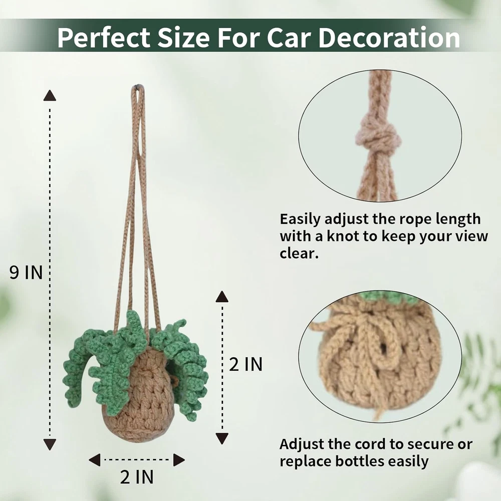 Store New Arrivals Add to Favorite View Feedback Contact Car Ornaments Refillable Crochet Car Air Freshener 12Ml Diffuser Bottle with Cute Potted Plant Car Mirror Decor Hanging, Car Accessories Air Hanging Fragrance Oil Diffuser Description Item model number 761729026961 Unit Count 1.0 Count Number of Items 1 Item Form Pod Package Dimensions 3.1 x 3.1 x 2 inches; 1.92 ounces Charming Crochet Plants: This car mirror hanging accessories combines adorable plants with a fragrance bottle,showcasing a unique aesthetic that infuse your car with life and vitality, creating a warm and relaxing ambiance Meticulously Handcrafted: Each crochet car accessories is lovingly handcrafted from high-quality cotton yarn.No glue is used, the choice of eco-friendly materials ensures durability and safety Easy to Use: Creating your essential oil car freshener is simple and enjoyable. Just remove the cap, add your favorite fragrance or essential oil, secure the bottle, insert the diffuser stick, place it in the bag, and hang it on your rearview mirror Versatile and Reusable: The elastic opening can be easily adjusted and replaced. Whether you are adding perfume, essential oils, or aromatic items such as coffee beans, it is both a decorative and functional car charm and will not obstruct your view A Heartfelt Unique Gift: This air freshener pendant with boho plant is beautifully packaged, resembling a warm blessing perfect for any occasion. It conveys love and good wishes to friends and family, creating a special emotional connection for everyone who receives it Product Description It is not only a decorative item, but also a unique scent in your car. You can choose the scent you like, so that it accompanies you through every wonderful moment of your journey. Using Crochet Car Air Diffuser Only Requires Three Steps 1.UNTIE THE KNOT.Then take out the bottle. 2.Add your favourite essential oils to the bottle, Then insert the volatile stick 3.Put the bottle in then secure the bottle with a knot NOTE: Each crochet plants is hand crocheted, so slight size variations may occur due to the handcrafting process. VOLATILE STICK Vstrong water absorption, stable volatility WOOD CAP Each features unique natural wood grain GLASS BOTTLE Large capacity and lightweight Exclusne Art for Driving In the crochet plant basket,whether you add perfume, essential oils, or aromatic items such as coffee beans, it is a both decorative and functional Hanging Crochet. It can also be used as a car mirror decoration without interfering with driving. Cute Potted Plants Car Mirror Hanging Jewelry with Wide Application Crochet car air freshener can also be decorated in your living room, bedroom, office, closet to fill your environment with unique fragrance Crochet for love This pendant comes in a paper box, making it an ideal present for any occasion. It can be given as a push for hard work, to convey warm wishes to loved ones, or to express deep affection to a beloved. ABOUT US We offer the best prices around on high quality products. Our E-store includes media such as books, movies, music and games while offering electronics, toys, sporting apparel, clothing, tools, general home, garden items and more. SHIPPING We are always working hard to ensure your package arrives as soon as possible. Please understand that some factors like weather, high postal traffic, and the performance of shipping companies are outside of our control. We offer free shipping to the lower 48 states and ship within 2 business days of payment, usually sooner. We do not accept P.O. Boxes. Please provide a physical address. For shipping outside of the continental USA, we only use eBay's Global Shipping Program.The item is shipped to KY and then sent to the rest of the world. International customers are responsible for all duties and taxes. Continue to check out in order to calculate costs for shipping the item to your country. Messages regarding eBay's Global Shipping Program MUST be directed at eBay EXCLUSIVELY. RETURNS We offer a 30-Day Return Policy on items which you are not completely satisfied with. You have the option for a full-refund or an exchange of the item. No returns are available on items shipped outside of the USA. PAYMENT We accept PayPal. CONTACT US This page content is yet to come Please ad us to your favorite seller and visit again later Thank You CUSTOMER SATISFACTION We try our very best to make sure every customer is completely satisfied. If there's a problem, message us! We're happy to help. WE ACCEPT Copyright © 2021 AutoDS. | All Rights Reserved