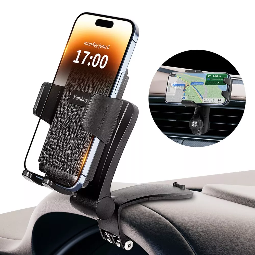 【Spring buckle design】: The buckle design is easier and more convenient to install, and once the fixed position is released, it can be firmly fixed on the dashboard. 【Sliding track design】: With a sliding track length of 6.5 centimeters, the phone's position can be adjusted 360 degrees to prevent obstruction of the line of sight. 【Horizontal and Vertical Screen Usage Design】: The universal ball rotates 360 degrees, allowing the phone to switch between horizontal and vertical screens freely, supporting different viewing angles and maps. 【Combination of clips and hooks】; Added metal hook accessory, which can meet the needs of both dashboard and vent use. 【Universal Compatibility】:The car phone holder is compatible with all the smartphones (4.0-7.2 inches) and thicker cases.