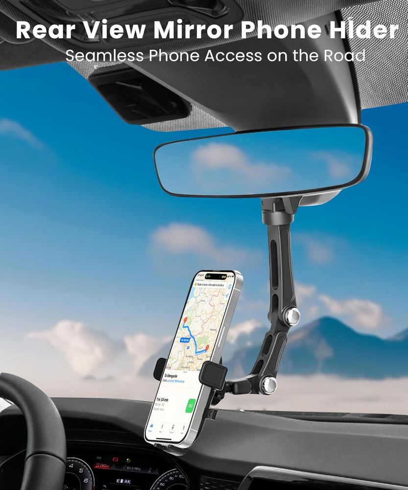 Store New Arrivals Add to Favorite View Feedback Contact Rearview Mirror Phone Holder for Car, Rear View Mirror Phone Holder Description Item model number HSJ-B01 Mounting Type Rearview mirror mount Color Press-Type Black Other display features Wireless Compatible Devices Smartphones Item Weight 8.8 ounces Special features Quick Release Button, Anti-Slip Padding, Compact and Sleek Design, Sturdy Construction, 360-Degree Rotation Compatible Phone Models function(f) {var _np=(window.P._namespace("DetailPageProductOverviewTemplatesJava"));if(_np.guardFatal){_np.guardFatal(f)(_np);}else{f(_np);}}(function(P) { P.when('A').execute(function(A){ A.on('a:truncate:po-attribute-truncate-3:updated', function(data) { var isTruncated = !data.truncateInstance.getIfTextFits(); var seeMoreElement = document.getElementById('po-attribute-see-more-id-3'); if(seeMoreElement) { seeMoreElement.style.display = isTruncated ? '' : 'none'; } }) }); })); Compatible with a wide range of smartphones, including Apple iPhone models: 16, 16 Pro, 16 Pro Max, 16 Plus, 15, 15 Plus, 15 Pro, 15 Pro Max, 14, 14 Pro, 14 Pro Max, 14 Plus, 13, 13 Pro, 13 Pro Max, 13 Mini, 12, 12 Pro, 12 Pro Max, 12 Mini, 11, 11 Pro, 11 Pro Max, XS, XS Max, XR, X, 8, 7, 7 Plus, 6, 6 Plus, SE, SE2, as well as Android devices like Samsung Galaxy S22, S22 Ultra, S21, S21 Ultra, S20, S10, and many more See more Package Dimensions 6.3 x 4.13 x 2.83 inches 【Enhanced Safety】: Keeps your phone within sight, reducing distractions and enhancing road safety. 【Universal Fit】: Compatible with most smartphones, ensuring a secure grip for iPhones and Android devices alike. 【Built to Last】: Made from premium aluminum alloy, our car phone holder ensures a secure grip and is vibration-resistant, holding your phone steady across all terrains. 【Versatile Viewing】: Innovative design offers multiple angles for optimal visibility. Rotatable and retractable for a personalized view. 【Quick Installation】: Effortless setup, just attach it to your rearview mirror with the adjustable clamp. ABOUT US We offer the best prices around on high quality products. Our E-store includes media such as books, movies, music and games while offering electronics, toys, sporting apparel, clothing, tools, general home, garden items and more. SHIPPING We are always working hard to ensure your package arrives as soon as possible. Please understand that some factors like weather, high postal traffic, and the performance of shipping companies are outside of our control. We offer free shipping to the lower 48 states and ship within 2 business days of payment, usually sooner. We do not accept P.O. Boxes. Please provide a physical address. RETURNS We offer a 30-Day Return Policy on items which you are not completely satisfied with. You have the option for a full-refund or an exchange of the item. No returns are available on items shipped outside of the USA. PAYMENT We accept PayPal. CONTACT US This page content is yet to come Please ad us to your favorite seller and visit again later Thank You CUSTOMER SATISFACTION We try our very best to make sure every customer is completely satisfied. If there's a problem, message us! We're happy to help.