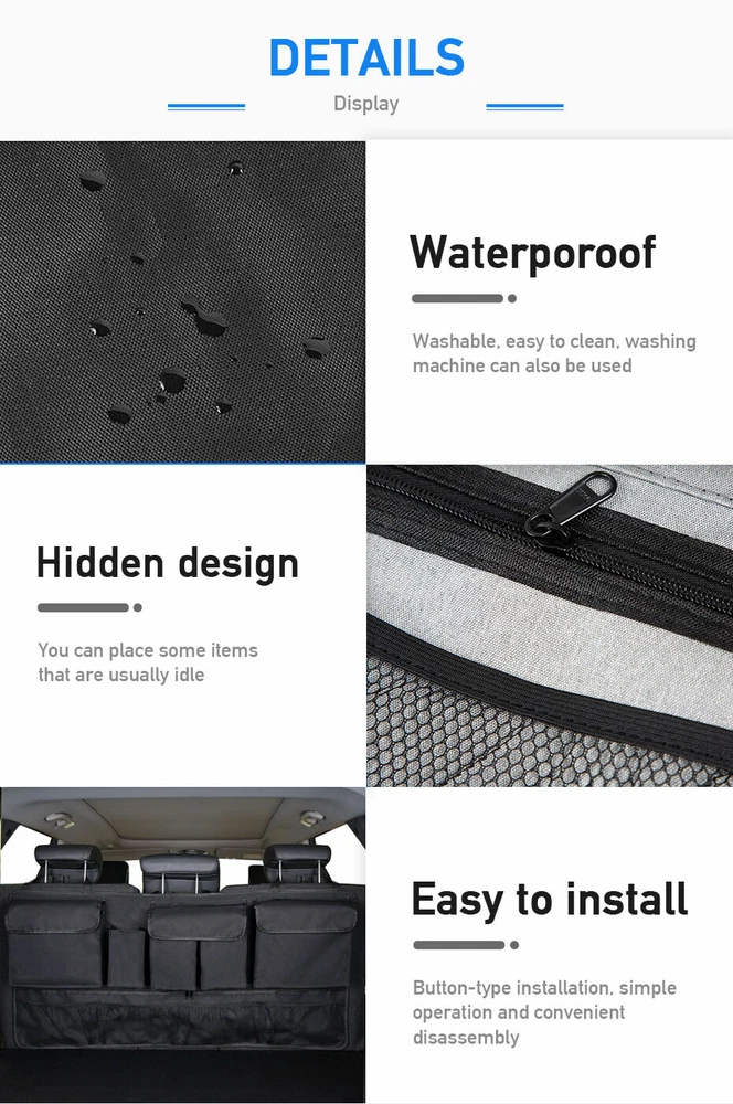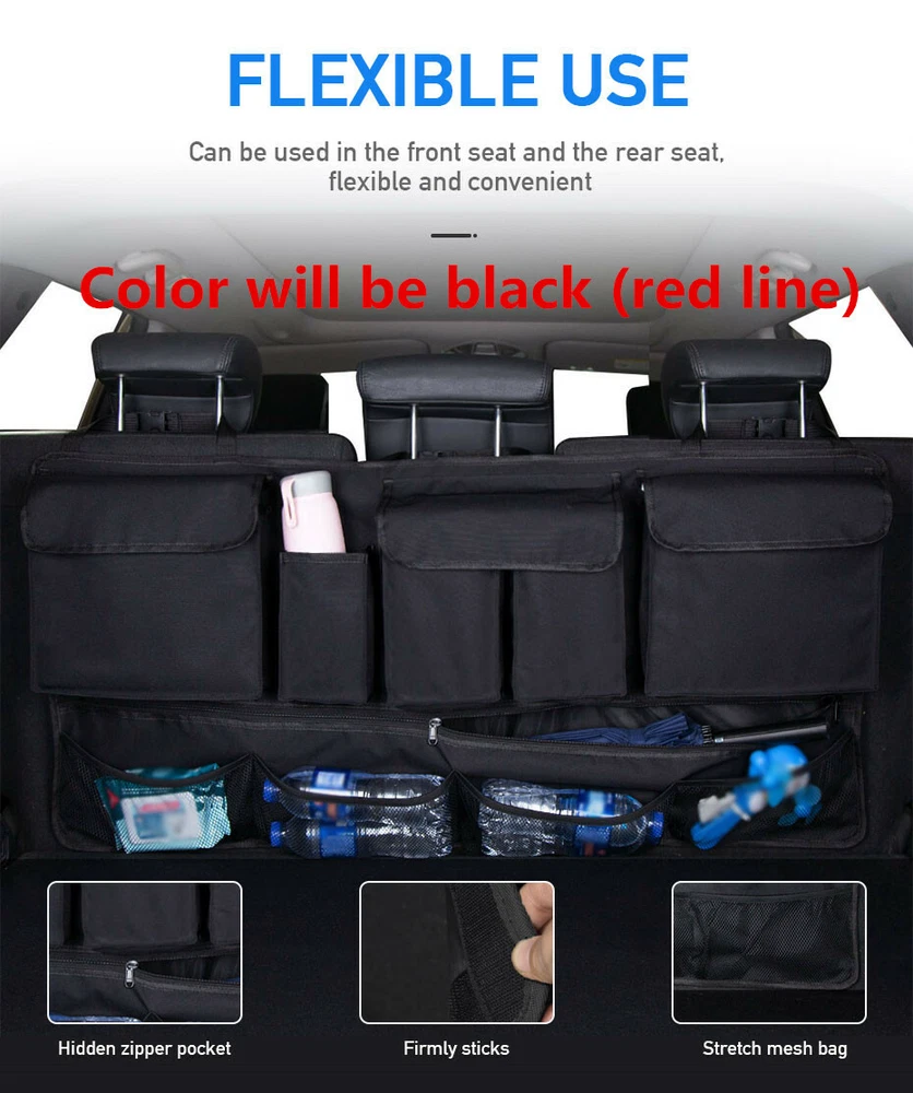Product Description Car Trunk Organizer Large Capacity Storage Bag Backseat Stowing And Tidying Car Accessories Oxford Cloth Black/Red Line Add our listing to Watchlist Or Add to Cart , you will get more discount Description: Condition: Brand New Material: 600D Oxford Cloth Size: 107cmx52cm(42"x20.5") Color: Black&Red Features: 1. Keeps your car organized and clean 2.Perfectly designed to fit most vehicles 3. Can be fixed to the back of the seat, convenient to use 4.Large capacity, can store your magazines, CD, tissue box . Notice: 1.The pictures are for reference only. The actual product shall prevail.Your satisfaction is our utmost concern. 2.Please contact us to better resolve any issue before leaving any neutral or negative feedback.Thanks a lot! Package: 1pcs Payment Returns Contact Us Shipping We accept payment by PayPal only ! Payment should be completed within 5 days after buyer places the order,or else an unpaid case will be opened in order to cancel the transaction. If you can not pay in time, please contact us. e-check from PayPal will only be processed once the payment clears. All of the items will be shipped to buyer's EBAY address,please confirm your address on Ebay before you buy.Your order will be usually shipped out the same or next business days once the payment is made and cleared. 30-day Warranty with Exchange for defective, malfunctioned, incorrect or parts-missing items. Please notify us and return the item with all parts and accessories packed and marked "FOR EXCHANGE" within 14 days of receipt. If defective, malfunctioned or parts-missing items are no longer available, a refund may be issued. All returning postage costs will be the responsibility of the buyers under all circumstances. If you encounter any problems about anything, please feel free to contact us and we will do our best to assist you solve the issue. If you are not satisfied in anyway, please feel free to let us know and give us a second chance to correct it before you decide to leave any neutral or negative feedback. Please contact us through eBay link if you have any questions. We will reply you within 24- 48 hours. Please check you spam mail if no response for 48 hours. All items will be checked before packing. All items are new and of high quality. Item will be shipped within 1 business days upon receipt of payment, excluding weekends and public holidays. If to USA,we will ship your order by USPS,it will take about 8-12 working days to you,and you can track it on line. If to other country,we will ship your order by China Post or Singapore Registered Air Mail,it will take about 14-21 working days to you,you aslo can track it on line. Delivery time is about 14-28 business days and it may take up to 8 weeks . Payment We accept payment by PayPal only ! Payment should be completed within 7 days after buyer places the order,or else an unpaid case will be opened in order to cancel the transaction. If you can not pay in time, please contact us. eCHECK from PayPal will only be processed once the payment clears. All of the items will be shipped to buyer's EBAY address,please confirm your address on Ebay before you buy.Your order will be usually shipped out the same or next business days once the payment is made and cleared. Returns 30-day Warranty with Exchange for defective, malfunctioned, incorrect or parts-missing items. Please notify us and return the item with all parts and accessories packed and marked "FOR EXCHANGE" within 14 days of receipt. If defective, malfunctioned or parts-missing items are no longer available, a refund may be issued. All returning postage costs will be the responsibility of the buyers under all circumstances. Contact Us If you encounter any problems about anything, please feel free to contact us and we will do our best to assist you solve the issue. If you are not satisfied in anyway, please feel free to let us know and give us a second chance to correct it before you decide to leave any neutral or negative feedback. Please contact us through eBay link if you have any questions. We will reply you within 24- 48 hours. Please check you spam mail if no response for 48 hours. Shipping All items will be checked before packing. All items are new and of high quality. Item will be shipped within 1 business days upon receipt of payment, excluding weekends and public holidays. If to USA,we will ship your order by USPS,it will take about 7-10 working days to you,and you can track it on line. If to other country,we will ship your order by China Post or Singapore Registered Air Mail,it will take about 14-21 working days to you,you aslo can track it on line. Delivery time is about 14-28 business days and it may take up to 8 weeks . Welcome to our Store ~